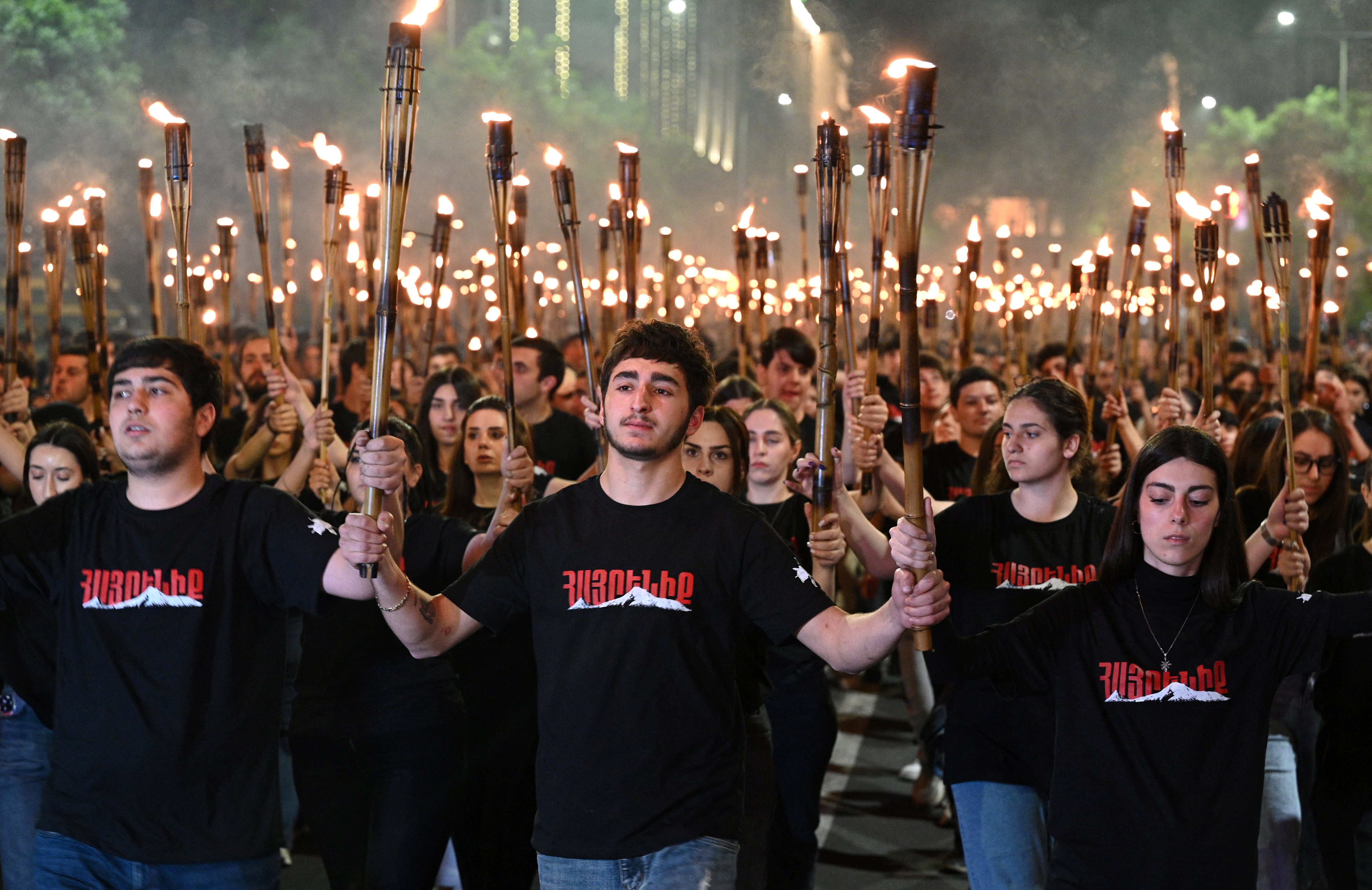 Armenians take part in the annual torch march on the eve of the Genocide Remembrance Day in Yerevan, on April 23, 2024, to mark the 109th anniversary of the World War I-era mass killings of Armenians under the Ottoman Empire in 1915. (Photo by Karen Minasyan/AFP Photo)