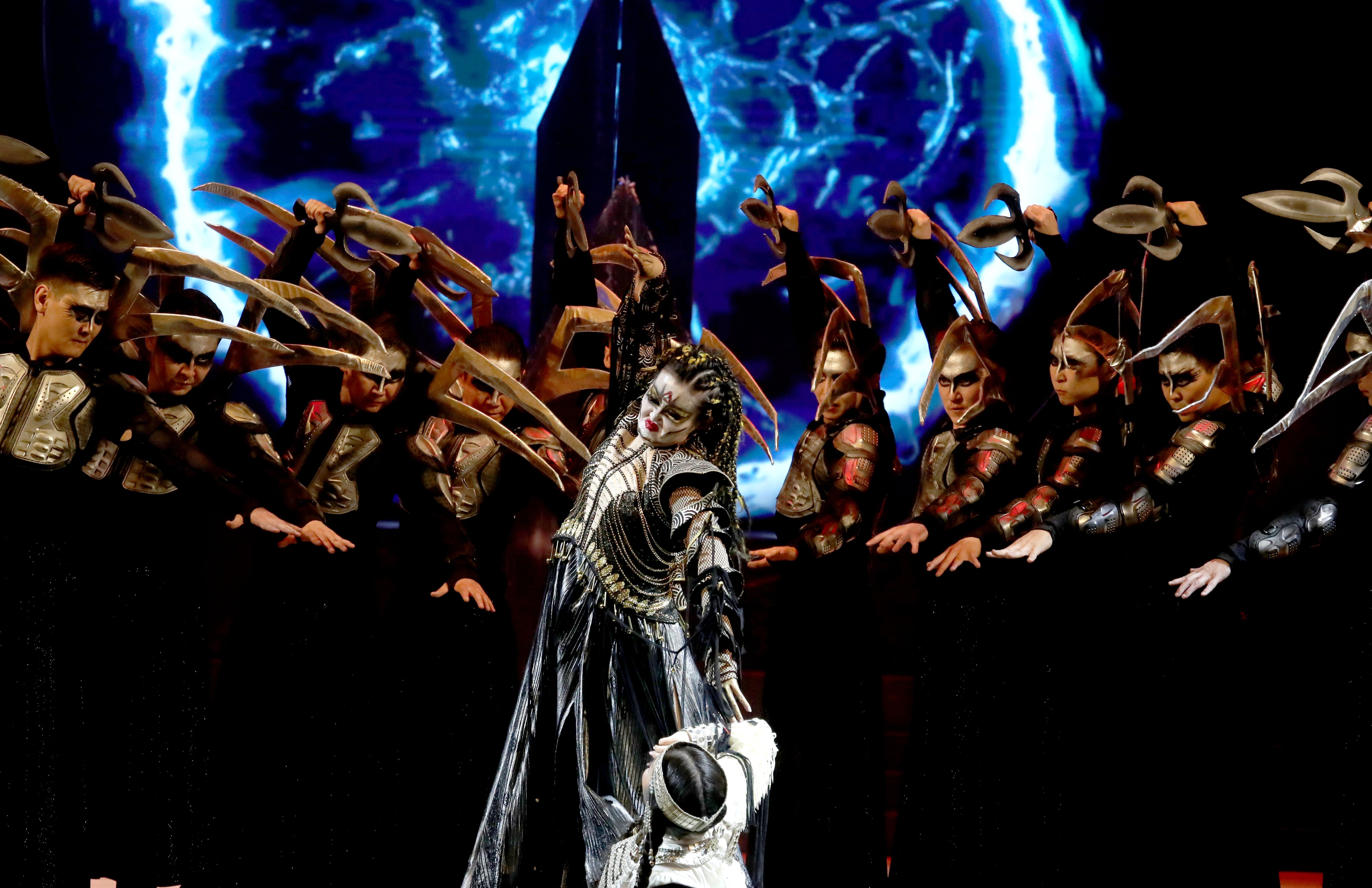 Yakut artists present a performance based on the national Yakut epic “Olonkho” on the stage of the Kyrgyz Academic Opera and Ballet Theater in Bishkek, Kyrgyzstan, 24 April 2024. The State Opera and Ballet Theater of the Republic of Sakha (Yakutia) is on tour in Bishkek on April 24 and 26. (Photo by Igor Kovalenko/EPA/EFE)