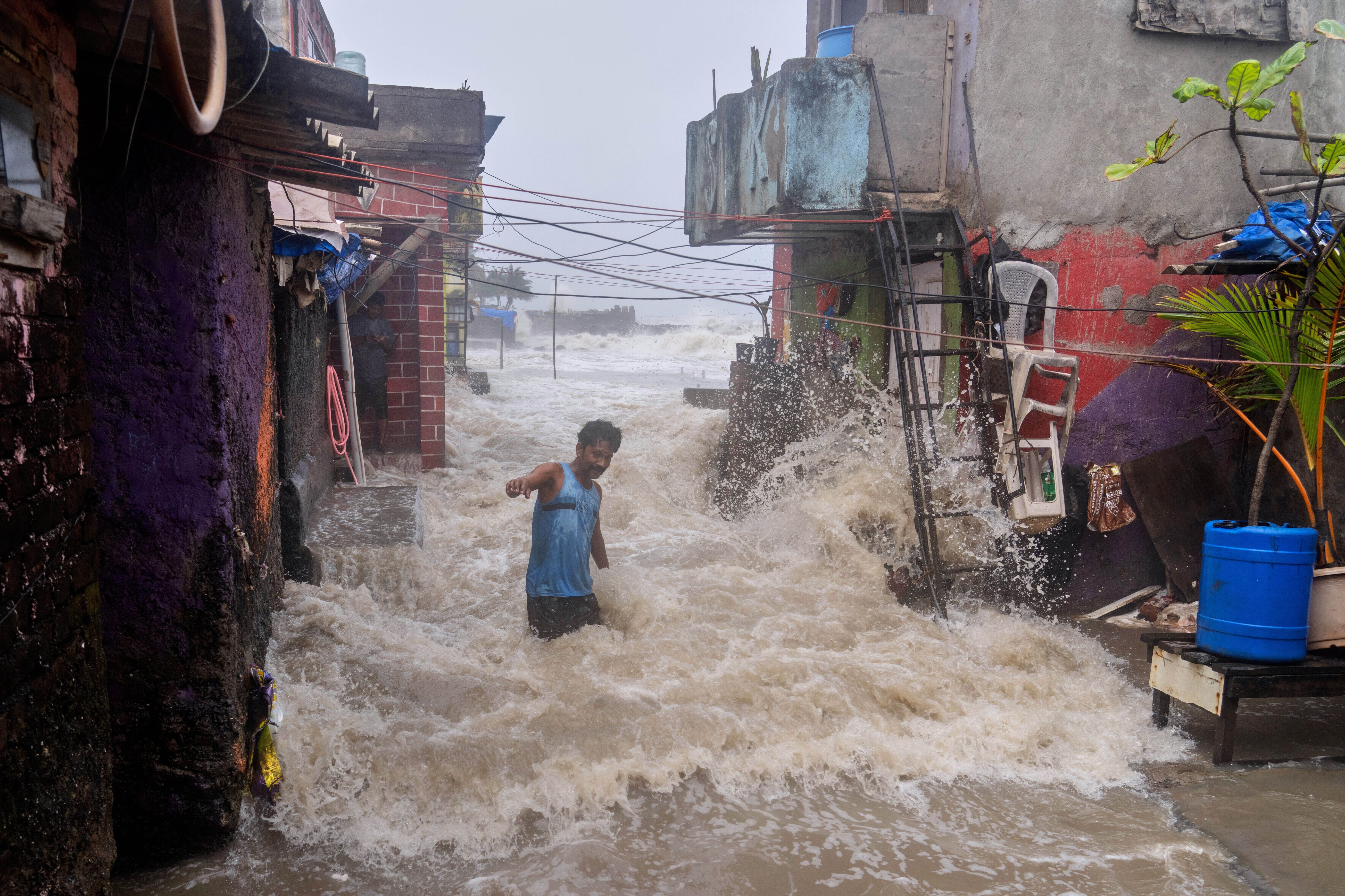 A man watches waves caused by high tide hit his house on the shore of the Arabian Sea in Mumbai, India, Wednesday, June 25, 2025. (Photo by Rafiq Maqbool/AP Photo)