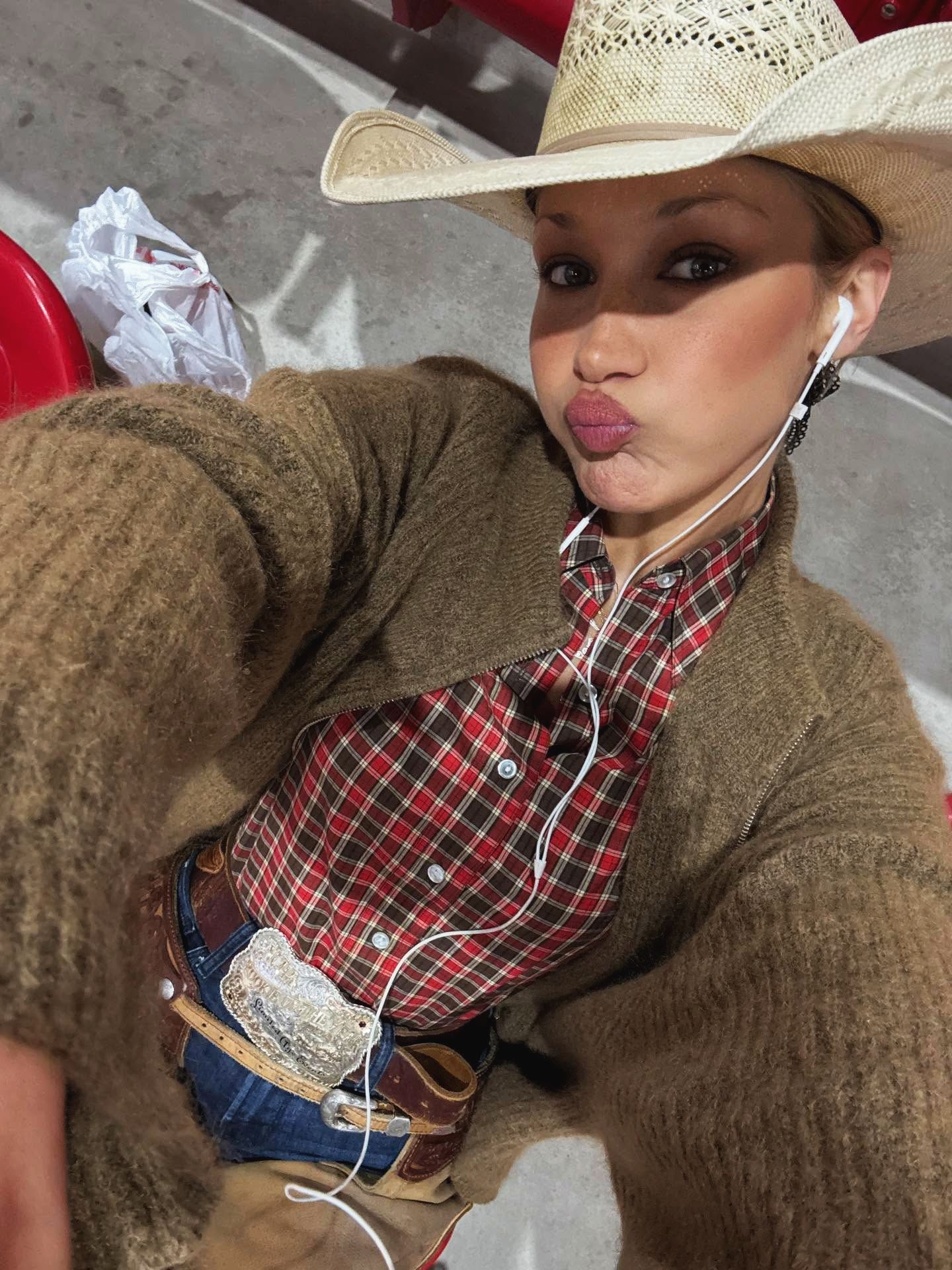 American model Bella Hadid is an official cowgirl, belt buckle and all. She posted on Insta that she’d won her first rodeo in Colorado on July 13, 2025. (Photo by bellahadid/Instagram)