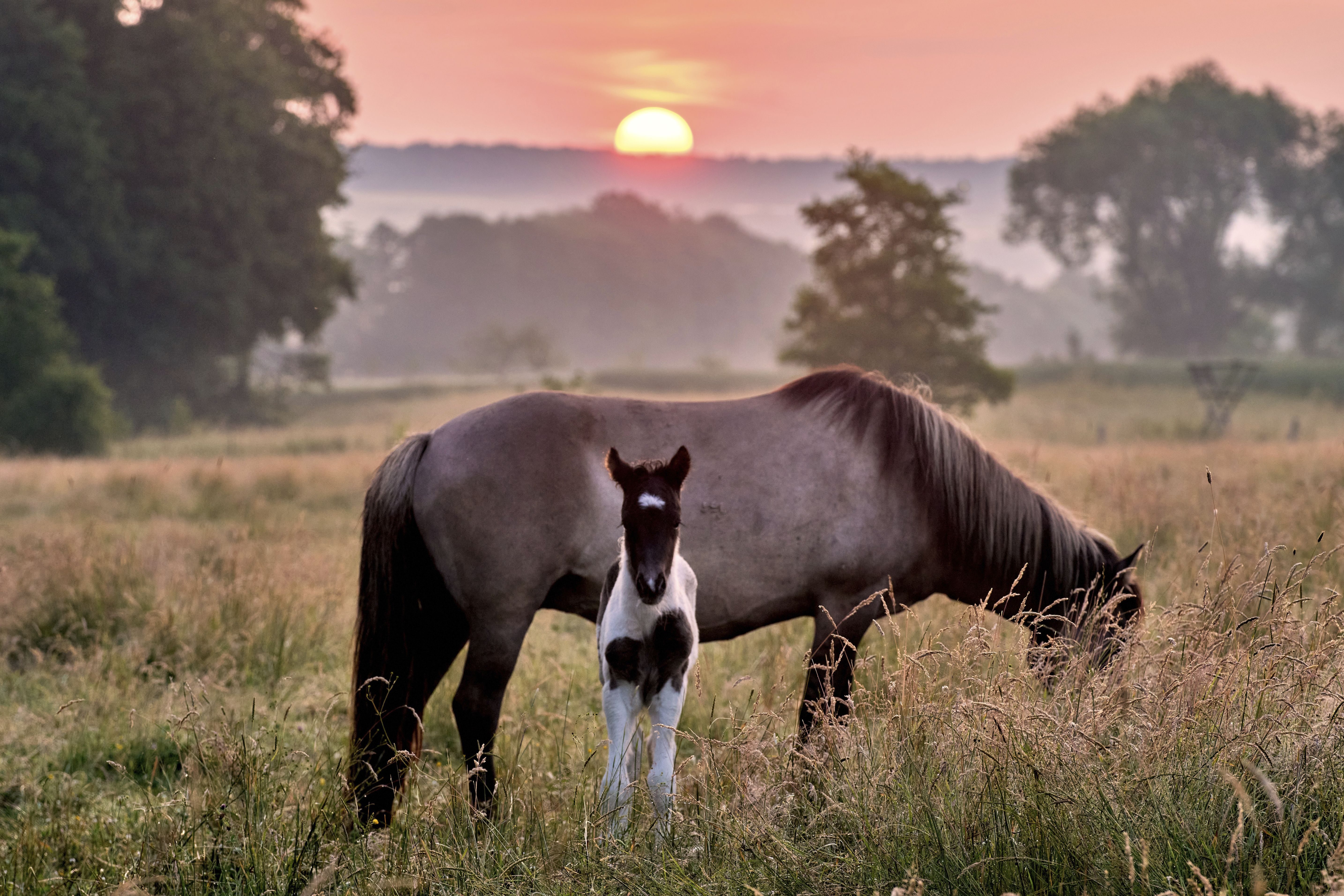 An Icelandic mare and her foal stand on a meadow at a stud farm in Wehrheim near Frankfurt, Germany, Tuesday, June 17, 2025. (Photo by Michael Probst/AP Photo)