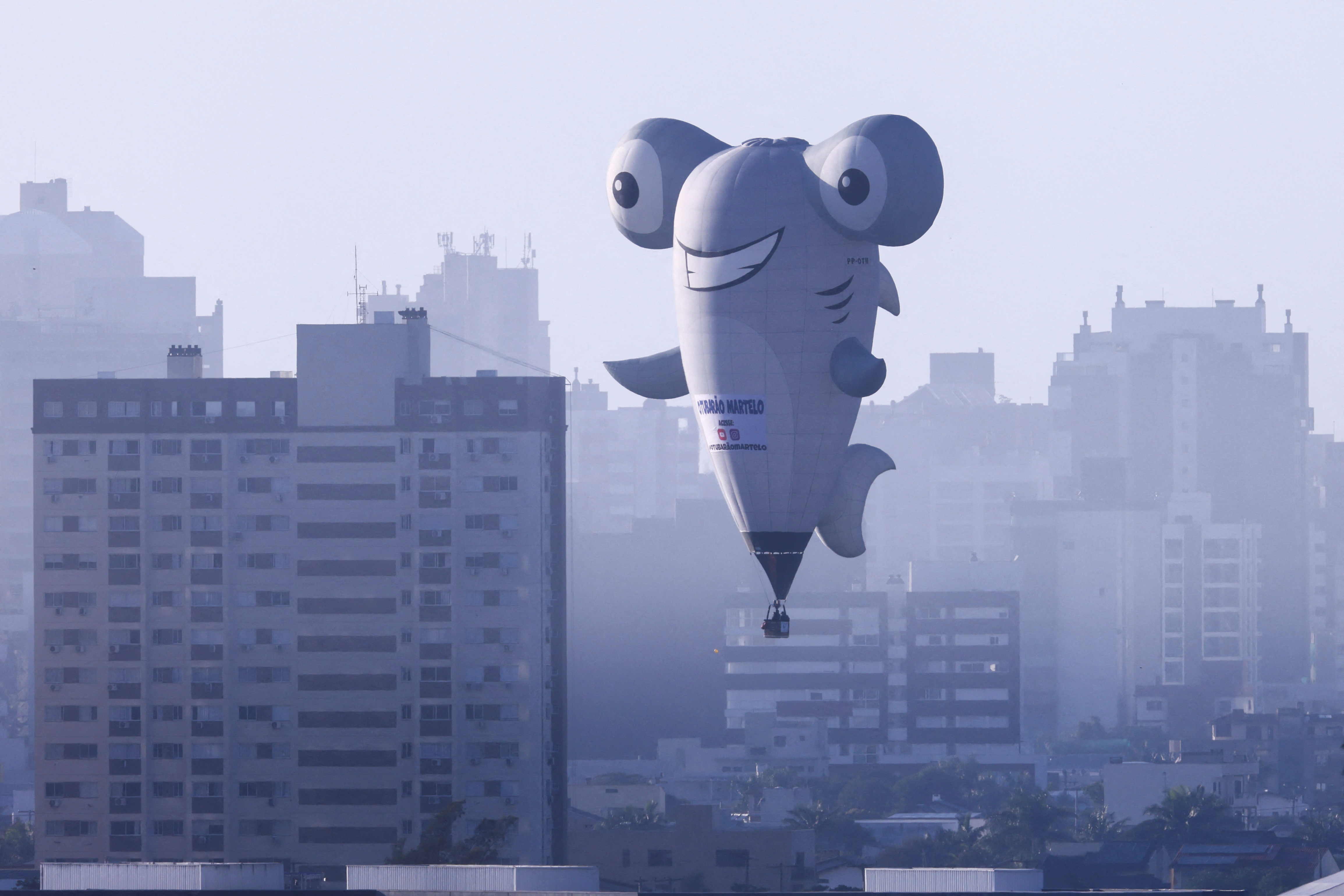 Balloonists take off during a competition at the 35th Balloon Festival in Torres, Rio Grande do Sul, Brazil on May 3, 2025. (Photo by Diego Vara/Reuters)