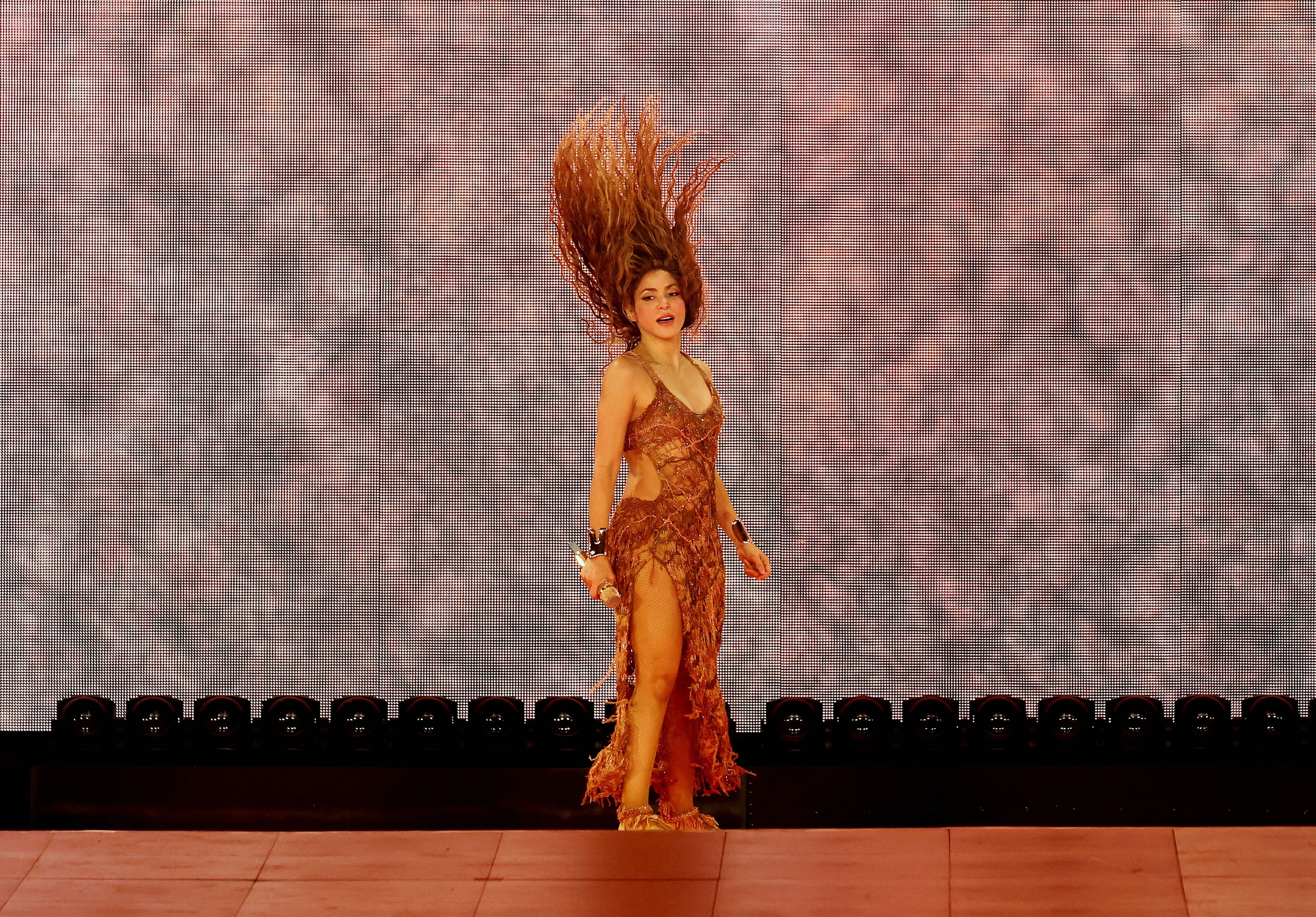 Colombian singer-songwriter Shakira performs onstage during Shakira: Las Mujeres Ya No Lloran World Tour – Los Angeles at SoFi Stadium on August 04, 2025 in Inglewood, California. (Photo by Kevin Mazur/Getty Images for Live Nation)