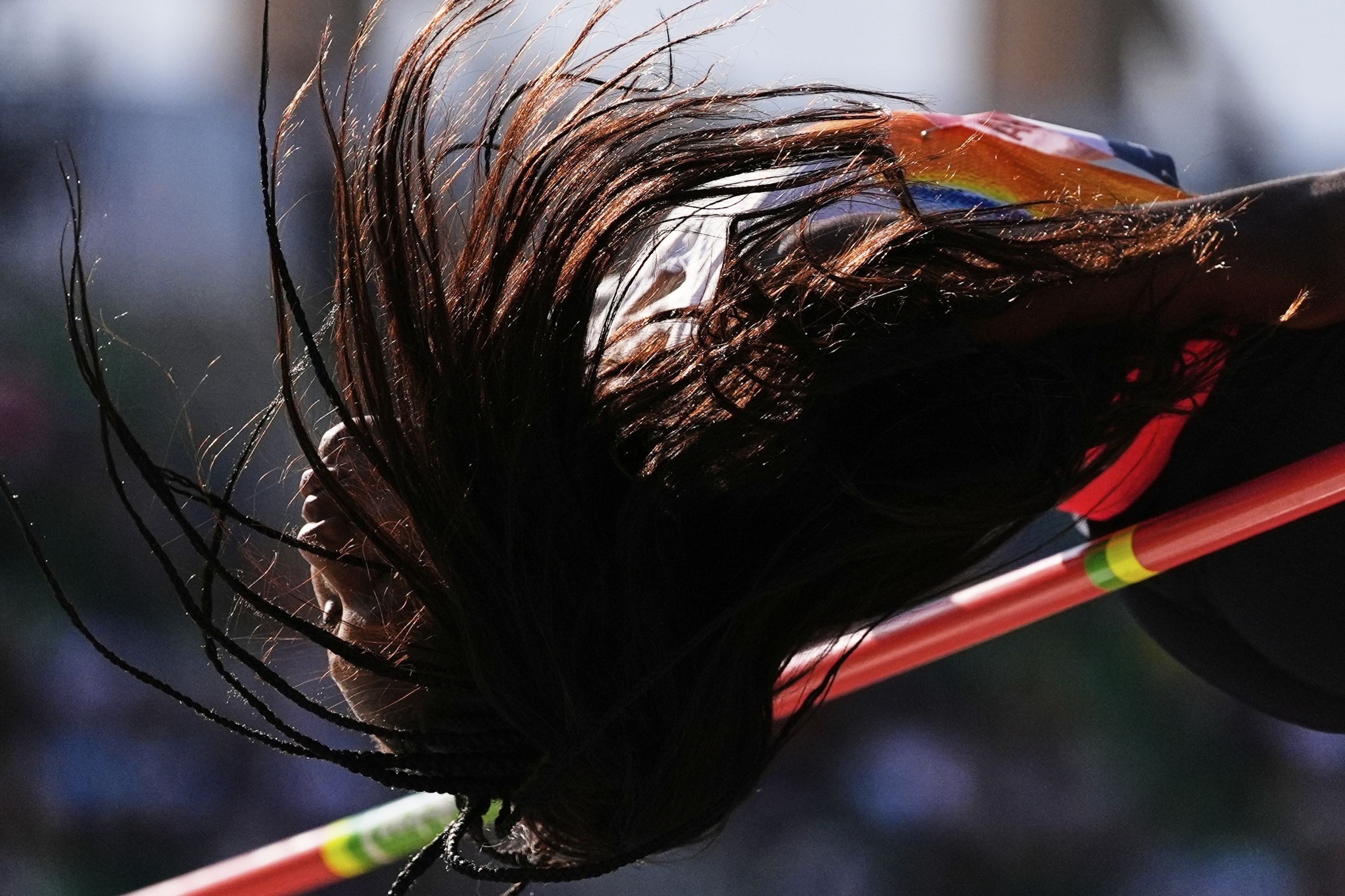 Sanaa Barnes competes in the women's high jump finals during the U.S. Championships athletics meet in Eugene, Ore.,Friday, August 1, 2025. (Photo by Ashley Landis/AP Photo)