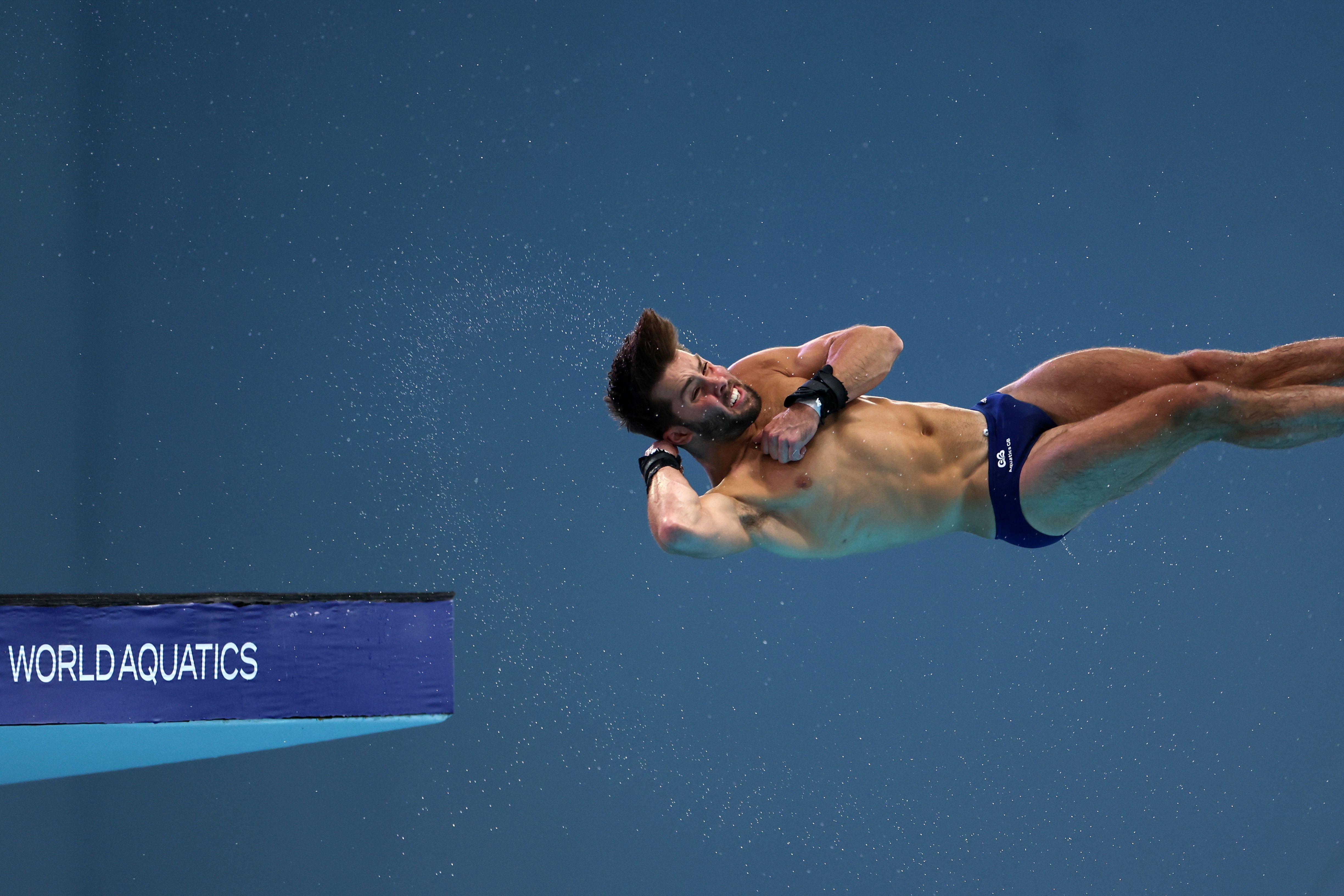 Euan McCabe of Great Britain competes during the Men's 10m Platform Diving preliminaries at the World Aquatics Championships Singapore 2025 in Singapore, 02 August 2025. (Photo by Fazry Ismail/EPA)
