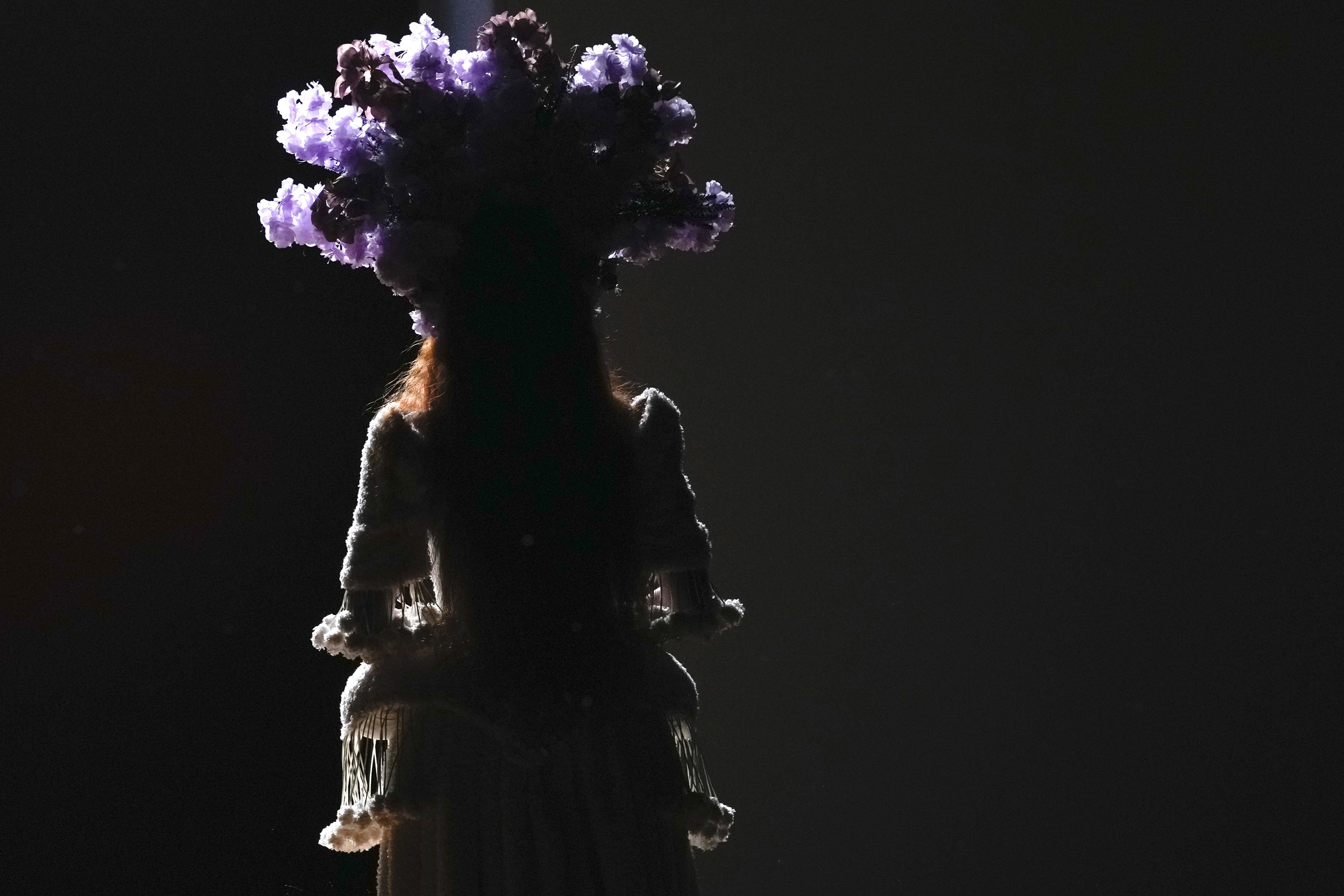 A model wears a creation from the Renata Buzzo collection during Fashion Week in Sao Paulo, Brazil, Thursday, April 11, 2024. (Photo by Andre Penner/AP Photo)