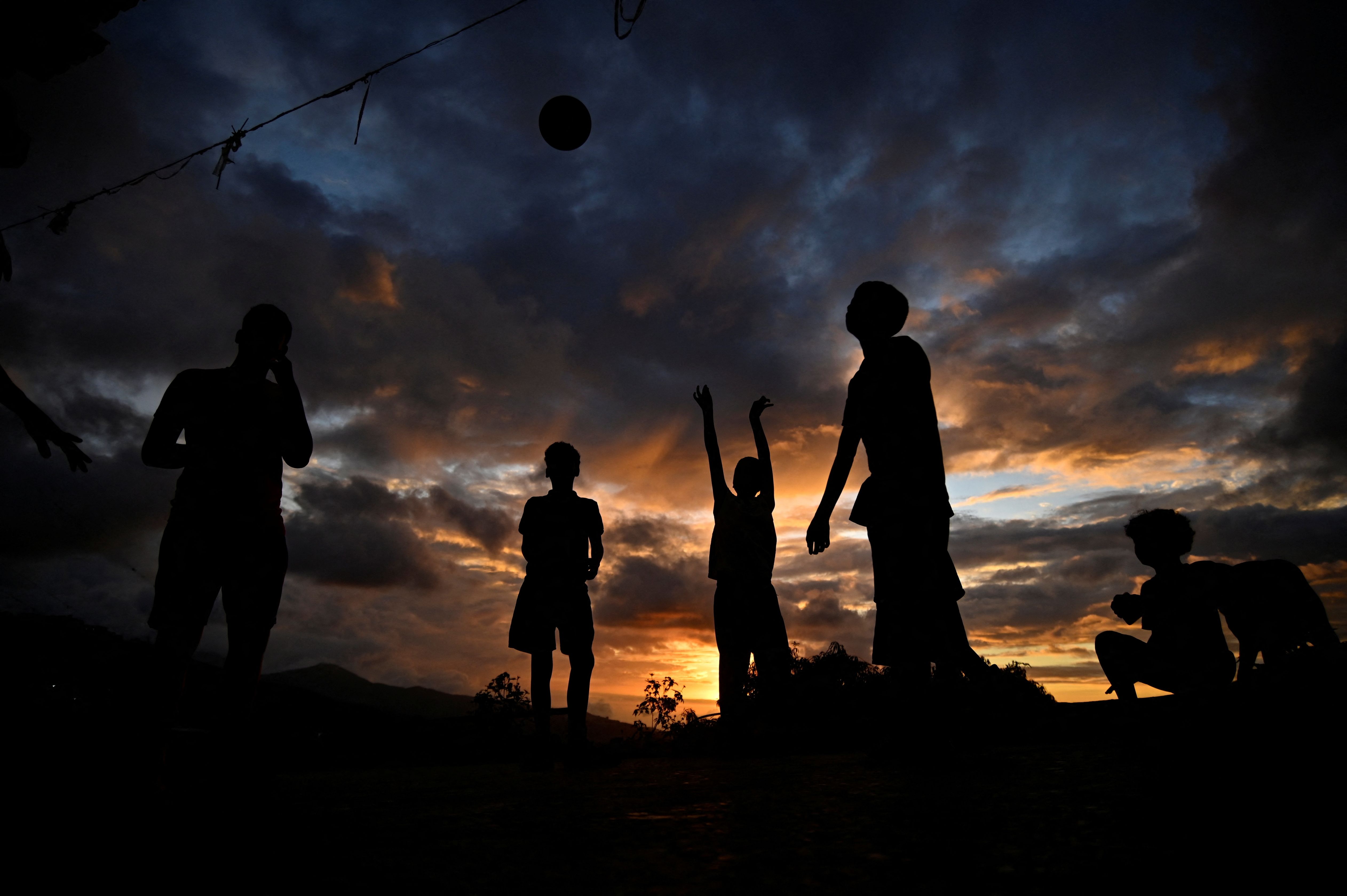 Children play basketball as Venezuela's parliamentary elections are held in Caracas, Venezuela on May 25, 2025. (Photo by Maxwell Briceno/Reuters)