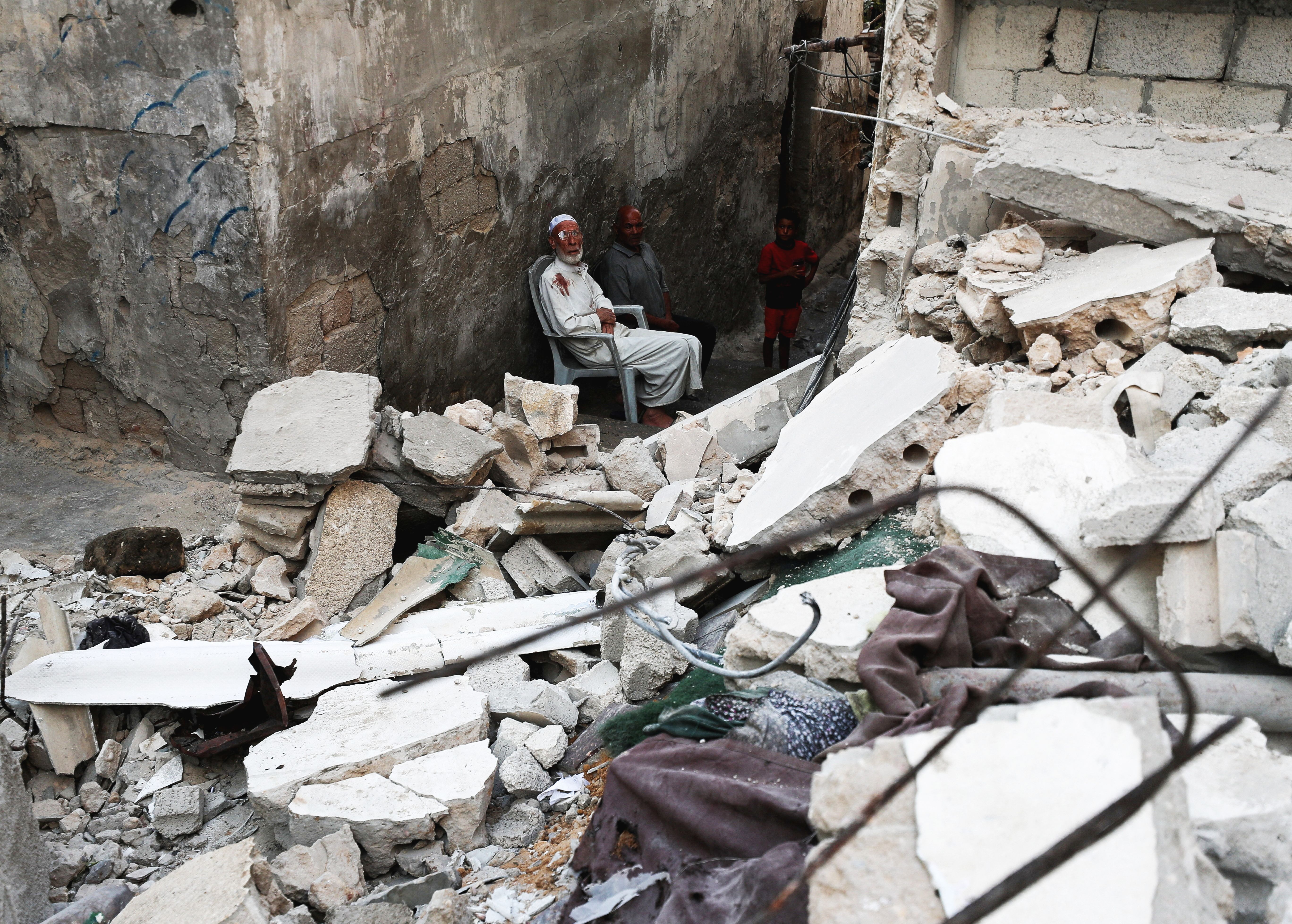 A child walks next to Palestinian men at the site of an overnight Israeli air strike on a house, in Gaza City on July 11, 2025. (Photo by Mahmoud Issa/Reuters)