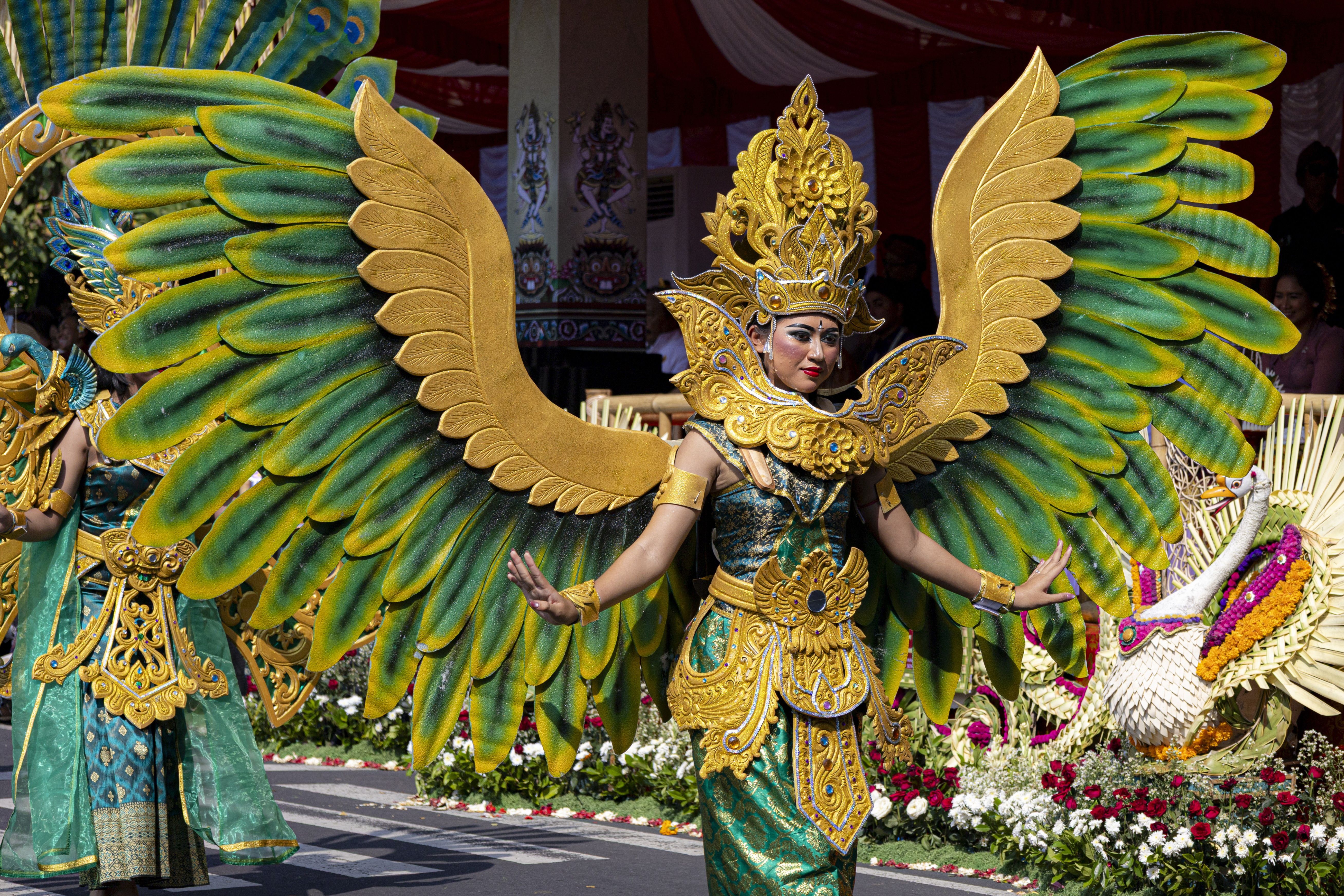 A dancer takes part in a parade to mark the opening of the annual Bali Art Festival on a main road in Denpasar, Bali, Indonesia, 21 June 2025. The Bali Art Festival runs from 21 June to 19 July 2025 and features hundreds of performers. (Photo by Made Nagi/EPA)