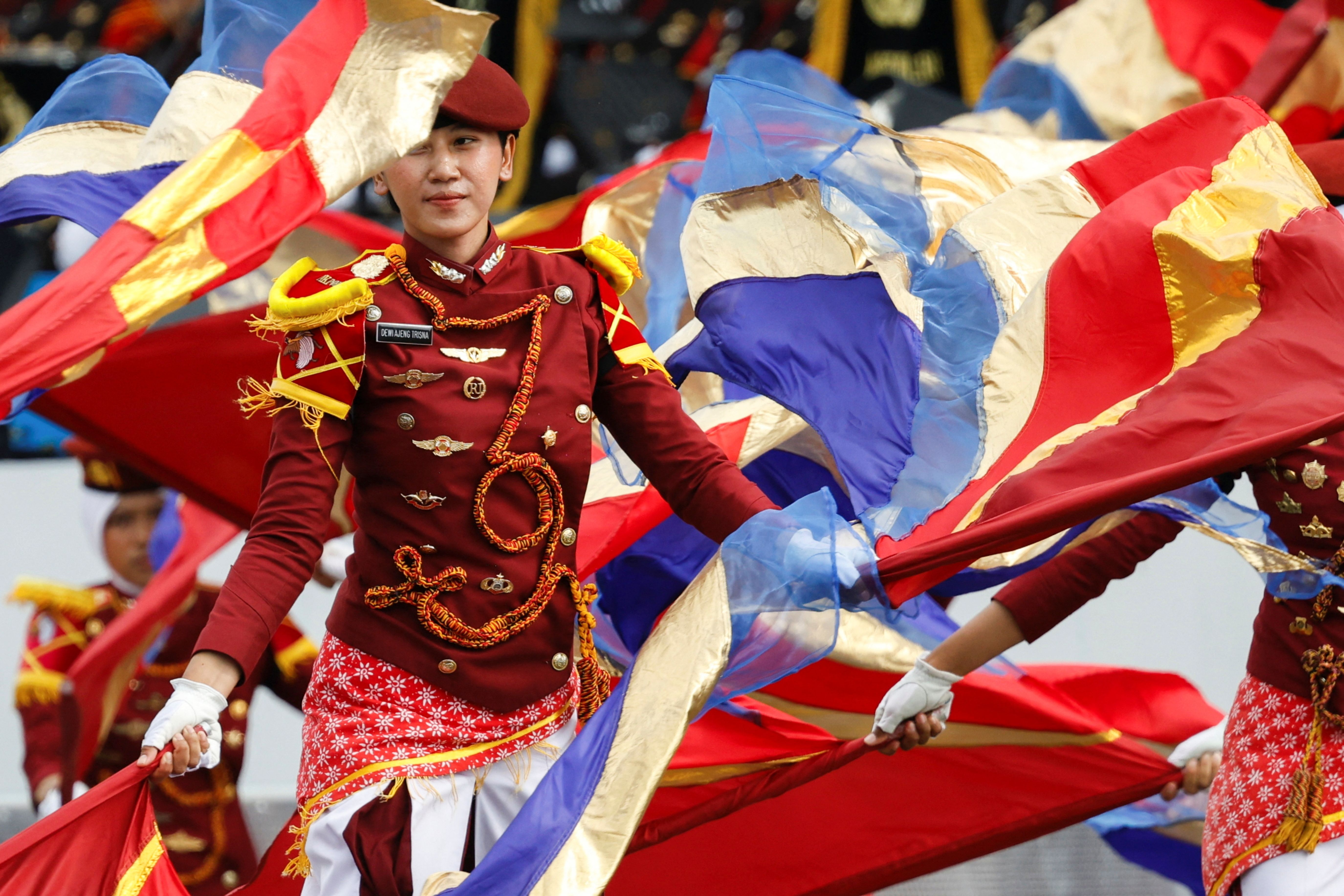 An Indonesian police personnel performs during a ceremony to mark the 79th anniversary of Indonesia's National Police at the National Monument in Jakarta, Indonesia, on July 1, 2025. (Photo by Ajeng Dinar Ulfiana/Reuters)