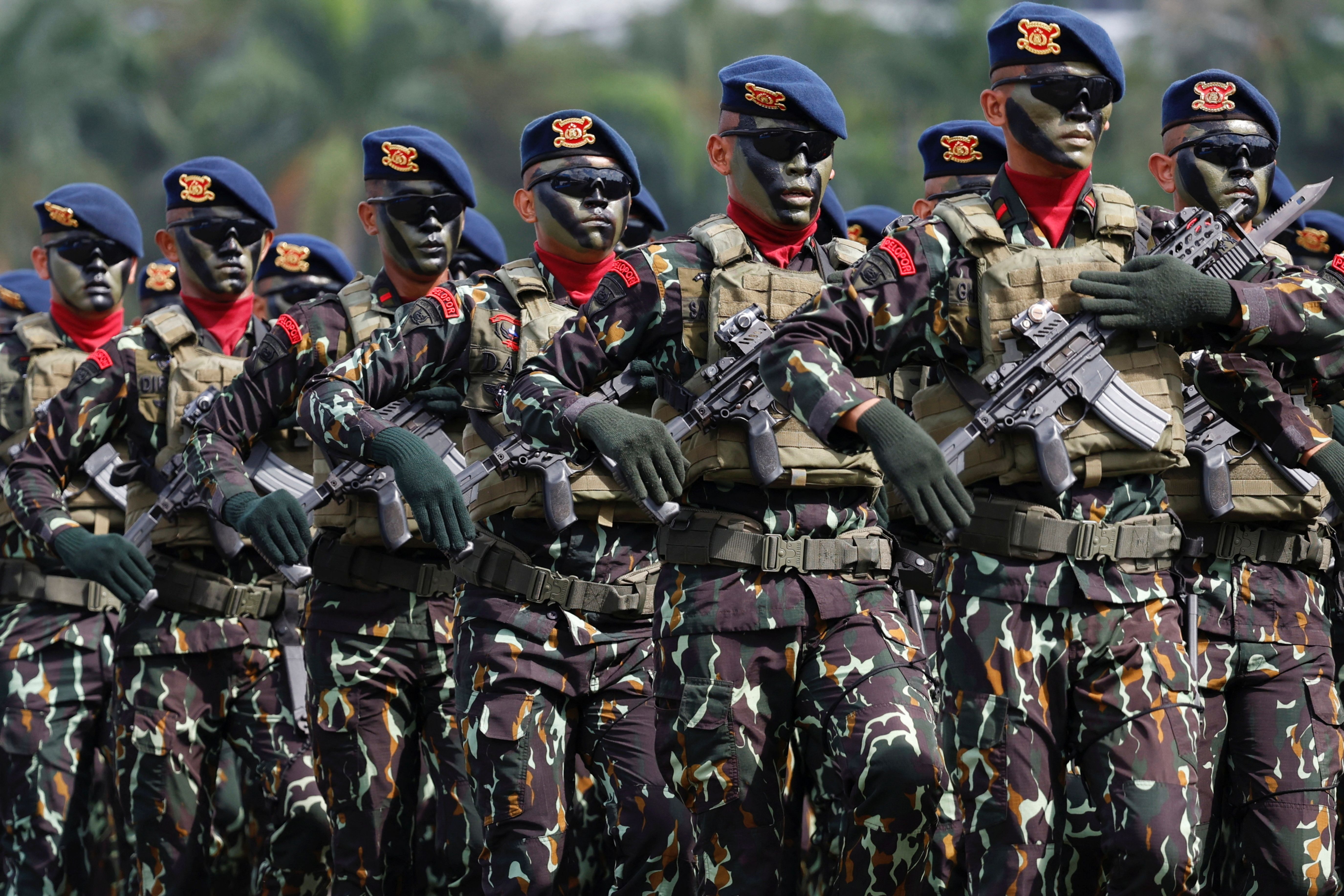 Indonesian police personnel march during a ceremony to mark the 79th anniversary of Indonesia's National Police at the National Monument in Jakarta, Indonesia, on July 1, 2025. (Photo by Ajeng Dinar Ulfiana/Reuters)