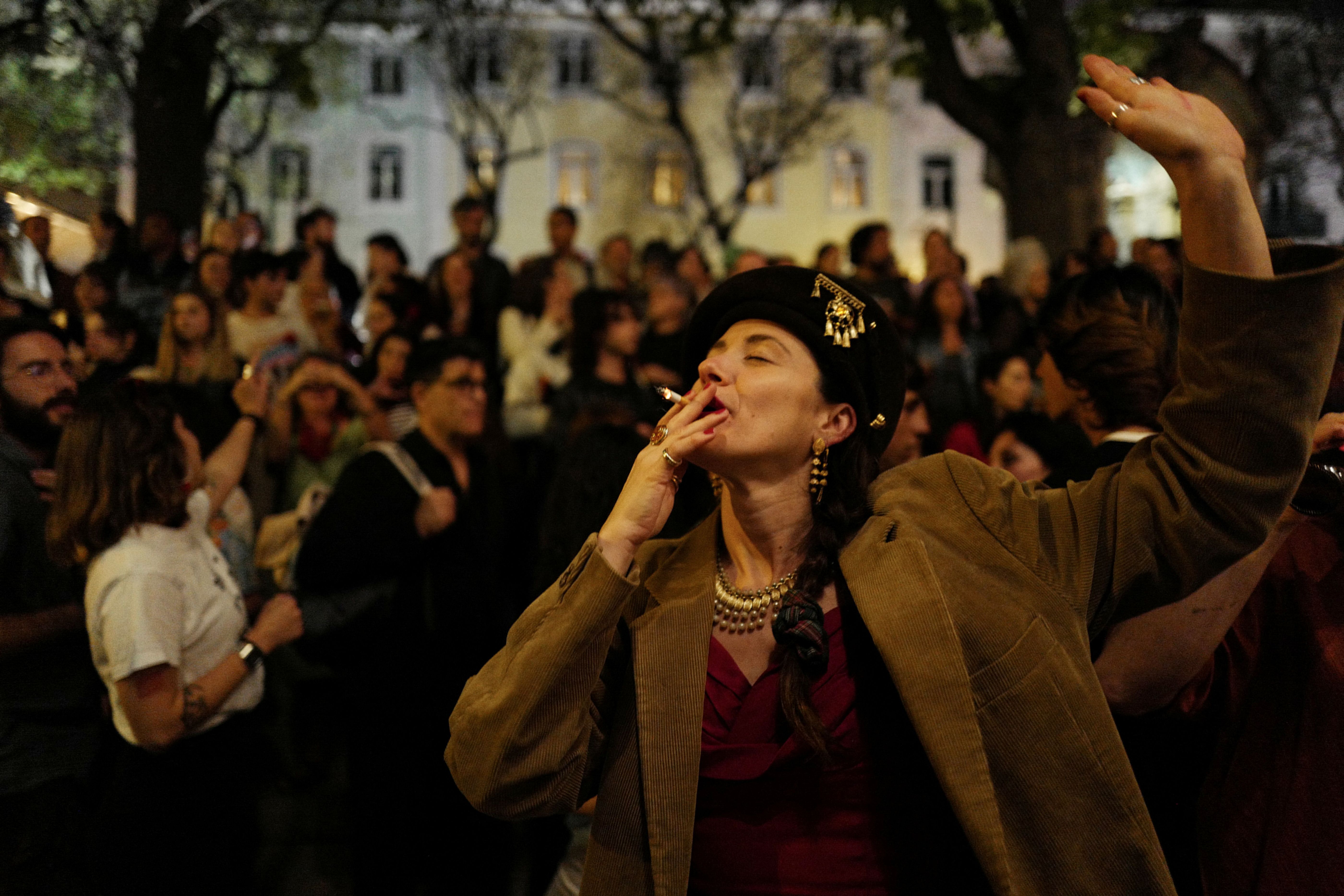 A woman dances in Carmo square as Portugal celebrates the 50th anniversary of the 1974 Carnation Revolution, which ended Europe's longest dictatorship, in Lisbon, Portugal on April 24, 2024. (Photo by Pedro Nunes/Reuters)