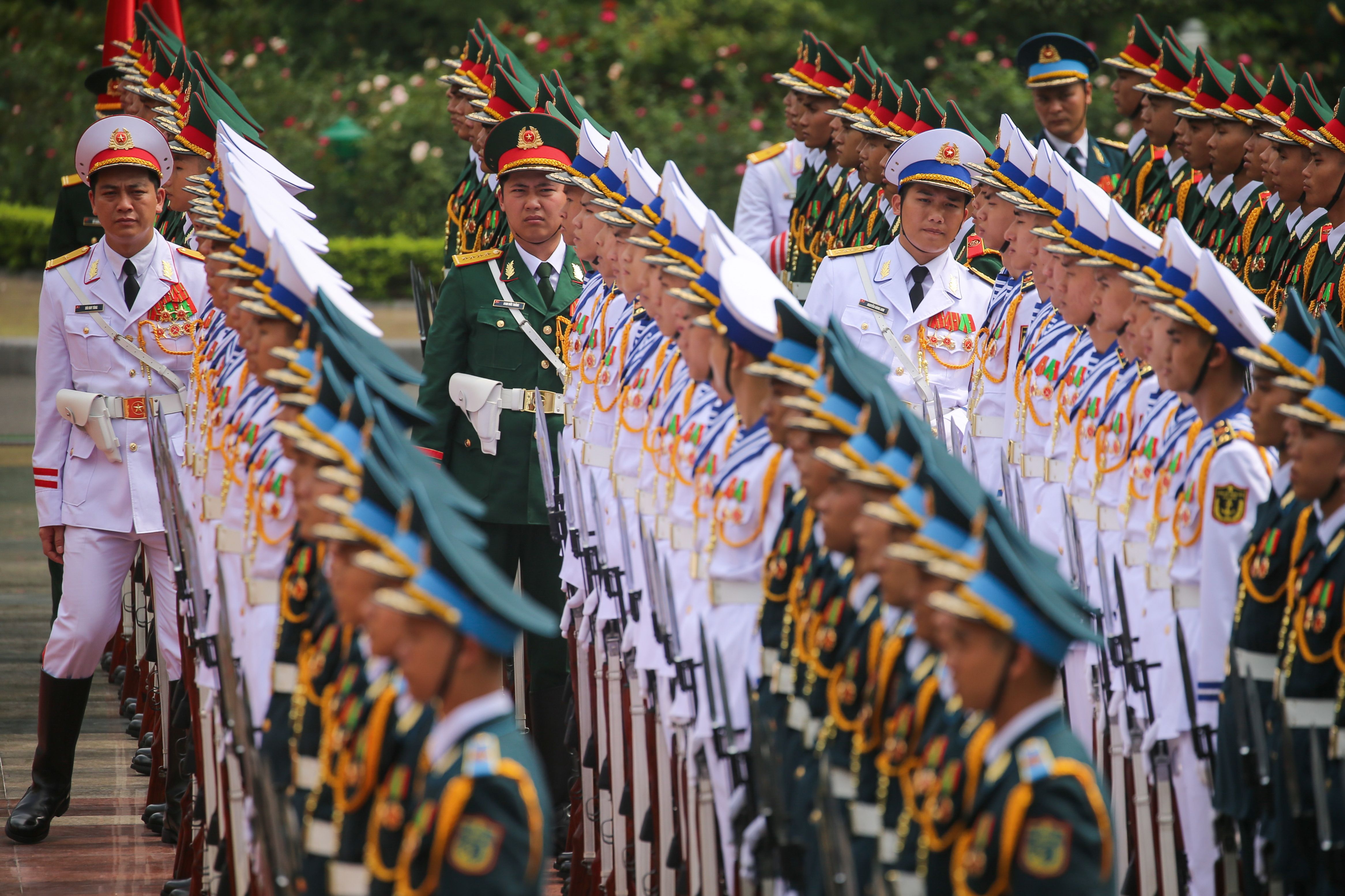 Members of the guard of honor prepare for a welcome ceremony of Sri Lankan President Anura Kumara Dissanayake at the Presidential Palace in Hanoi, Vietnam, 05 May 2025. Dissanayake is on an official visit to Vietnam from 04 to 06 May 2025. (Photo by Luong Thai Linh/EPA/EFE)