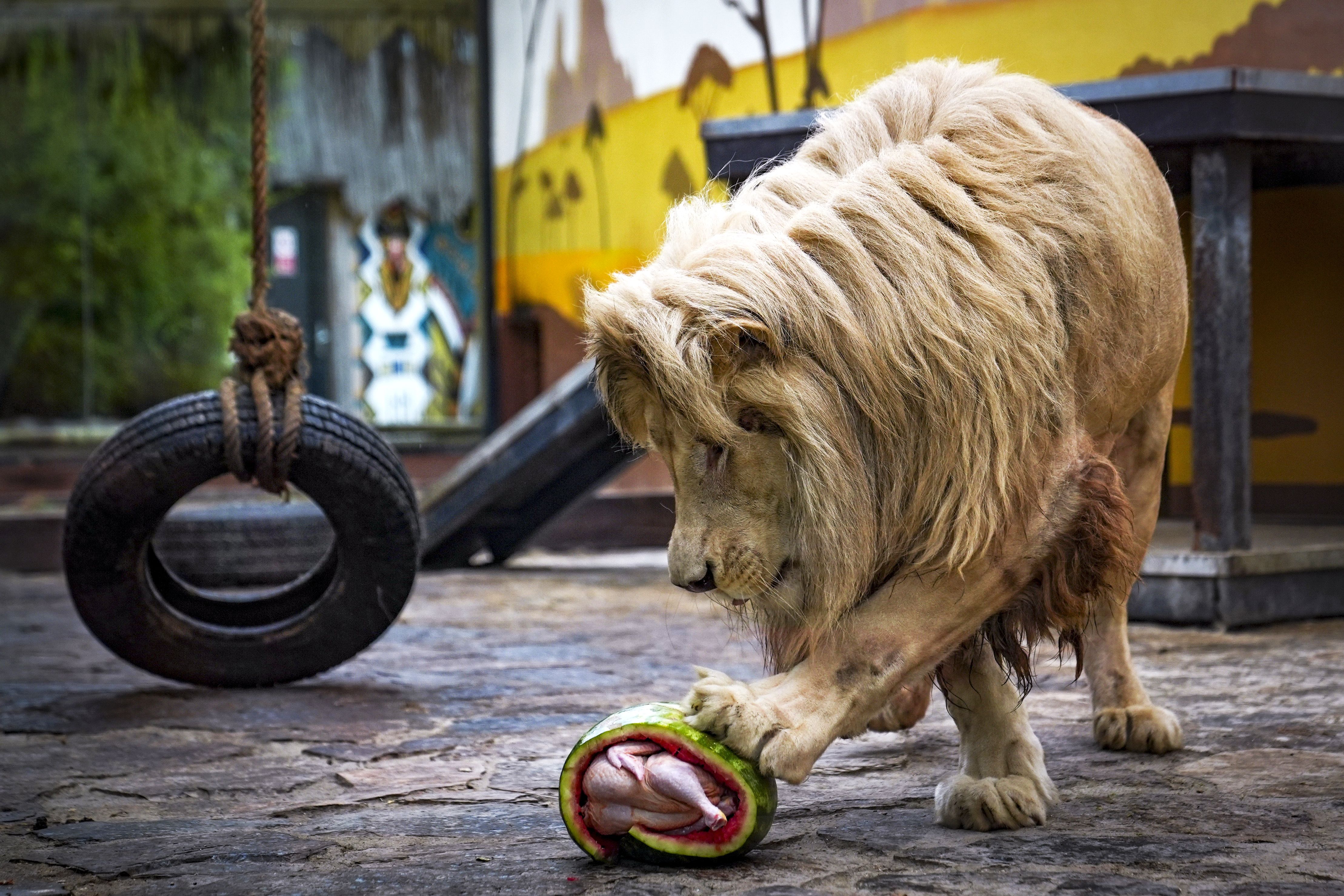 Lions are seen in Lion Park, where 13 lions live in Tuzla district of Istanbul, Turkiye on August 02, 2025. At Lion Park in Tuzla, where efforts are underway to ensure the continuation of the bloodline of the lions born there are cared for with great attention to ensure they live long and comfortable lives. The 13 lions of various species at the facility are monitored 24/7 via cameras in glass enclosures and are fed every other day with either red or white meat. (Photo by Beyza Comert/Anadolu via Getty Images)
