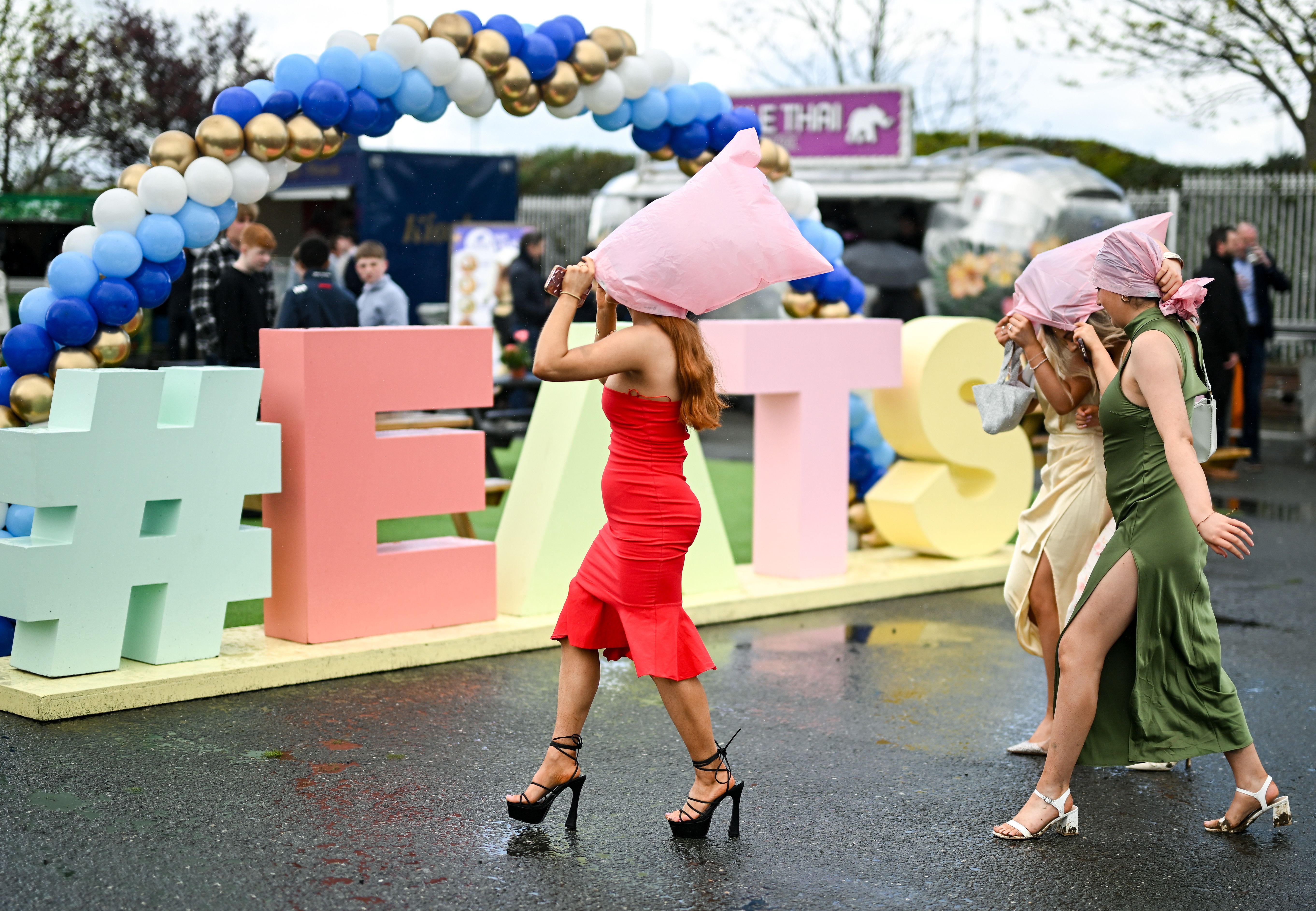 Racegoers arrive prior to racing on day three of the Fairyhouse Easter Festival at Fairyhouse Racecourse in Ratoath, Meath in Ireland on April 21, 2025. (Photo By David Fitzgerald/Sportsfile via Getty Images)