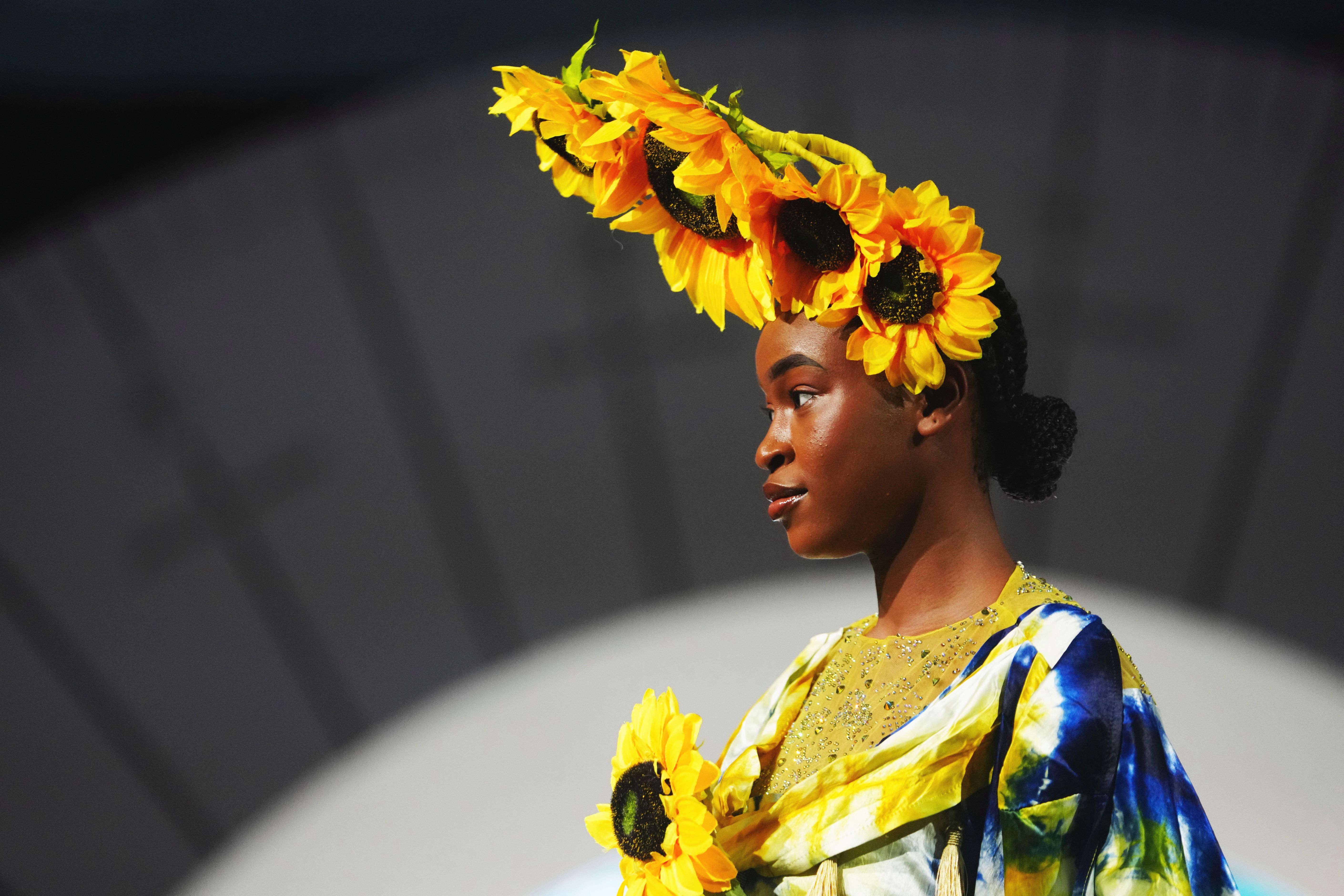 A model wears a creation by designer TRENDENCIAS X YUNIK WORKS during the Fashions Finest Africa Week in Lagos, Nigeria, Sunday, July 6, 2025. (Photo by Sunday Alamba/AP Photo)