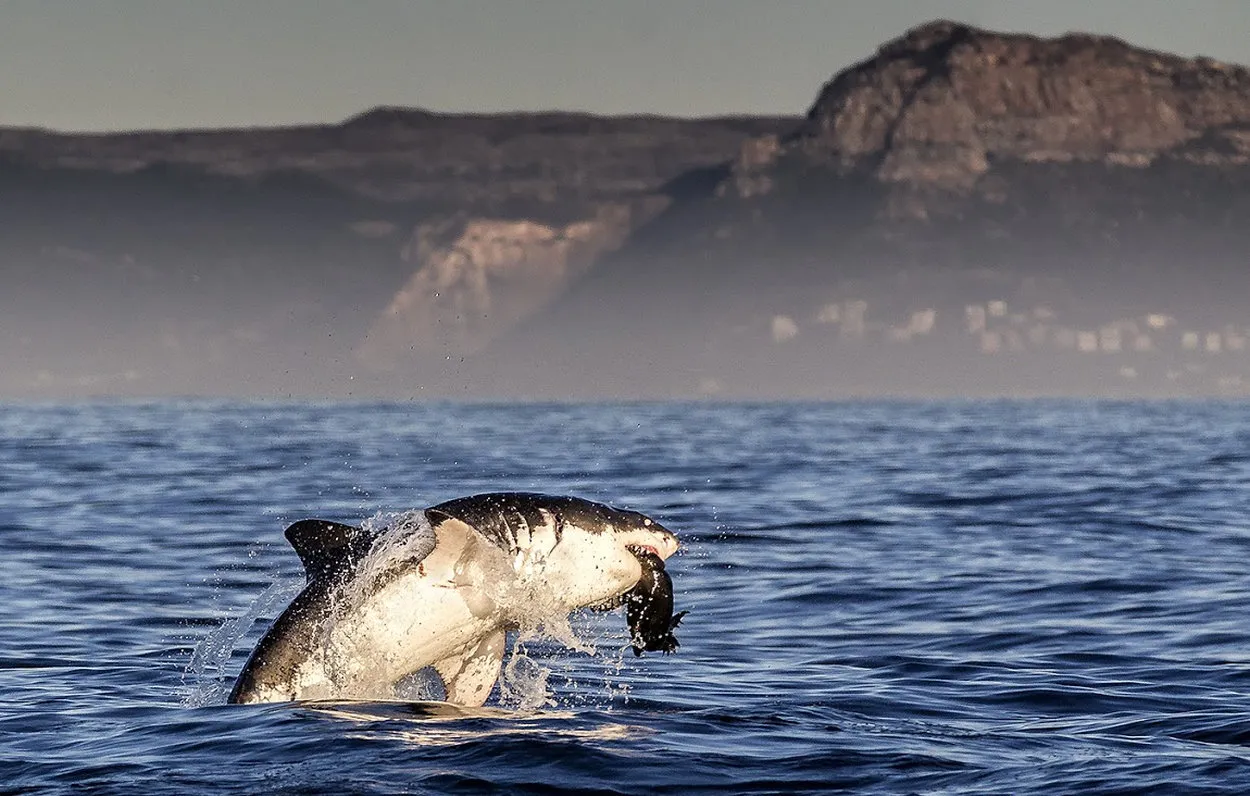 The great white shark, Carcharodon carcharias, also known as the great white, white pointer, white shark, or white death, is a species of large lamniform shark which can be found in the coastal surface waters of all the major oceans. The great white shark is mainly known for its size, with the largest individuals known to have approached or exceeded 6 m (20 ft) in length, and 2,268 kg (5,000 lb) in weight. This shark reaches its maturity around 15 years of age and can have a life span of over 30 years.