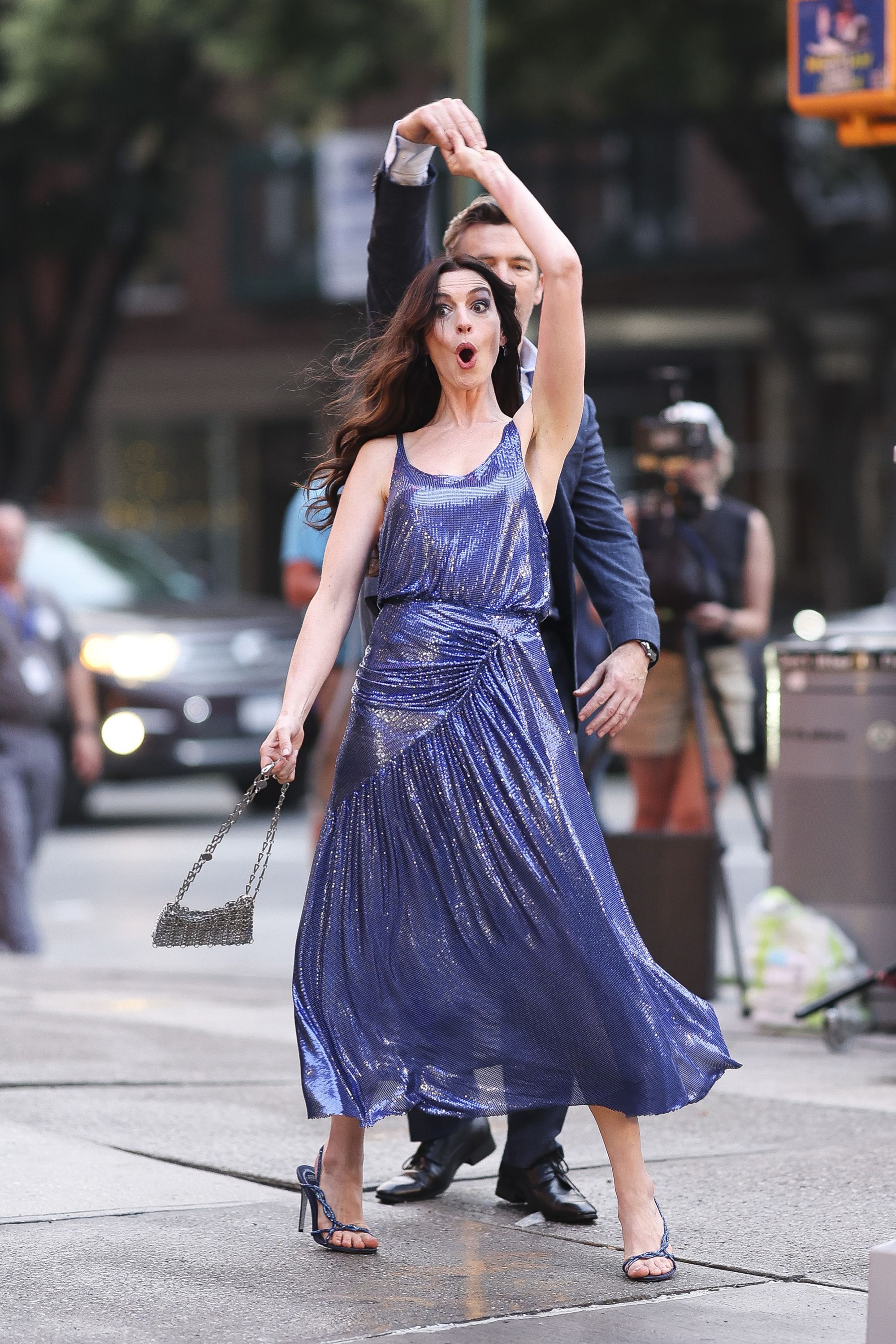 Actors Patrick Brammall and Anne Hathaway seen on the set of “The Devil Wears Prada 2” in Brooklyn on August 05, 2025 in New York City. (Photo by Aeon/GC Images)