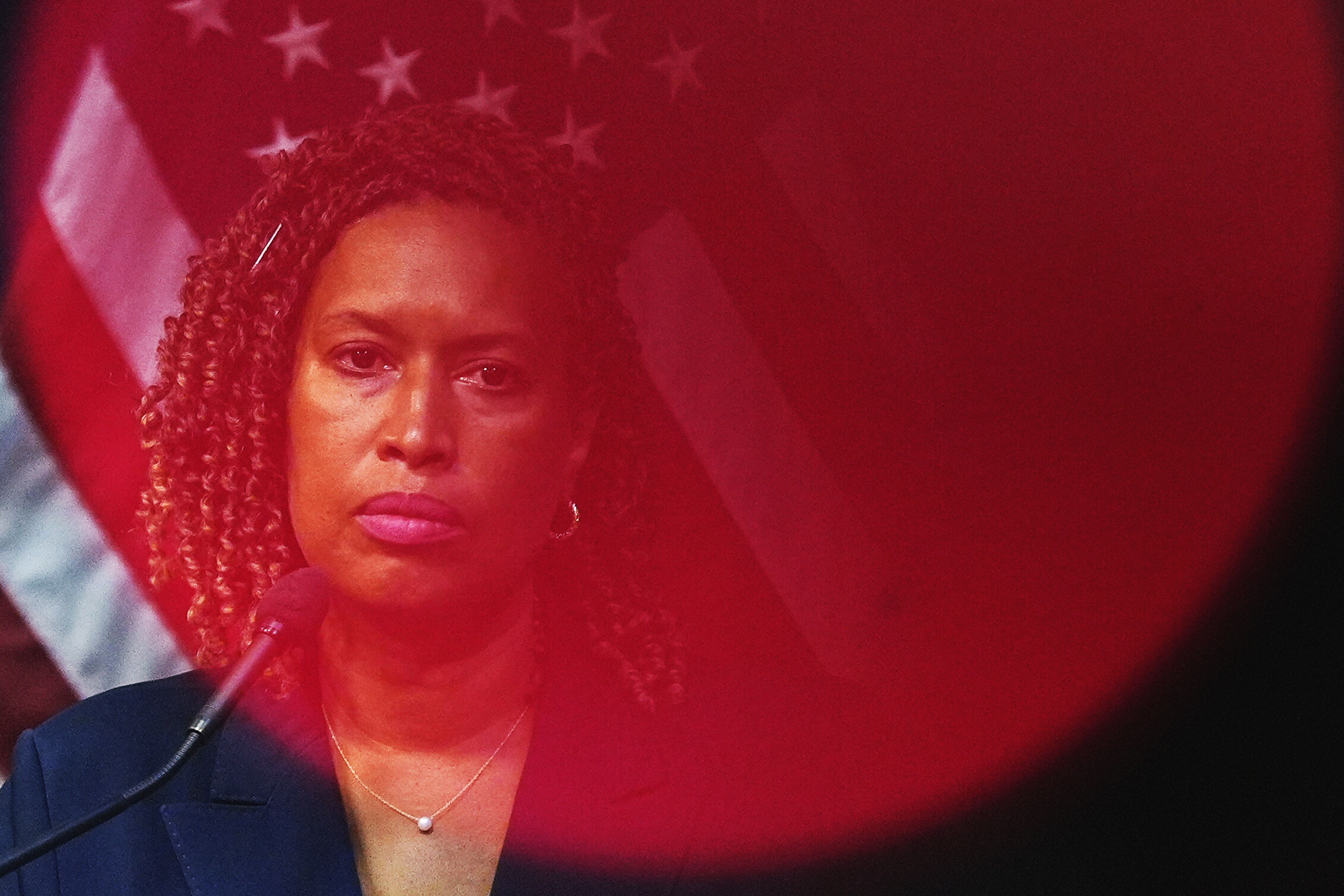 D.C. Mayor Muriel Bowser listens during a news conference on President Donald Trump's plan to place the city's police under federal control and deploy National Guard troops, in Washington, August 11, 2025. (Photo by Julia Demaree Nikhinson/AP Photo)