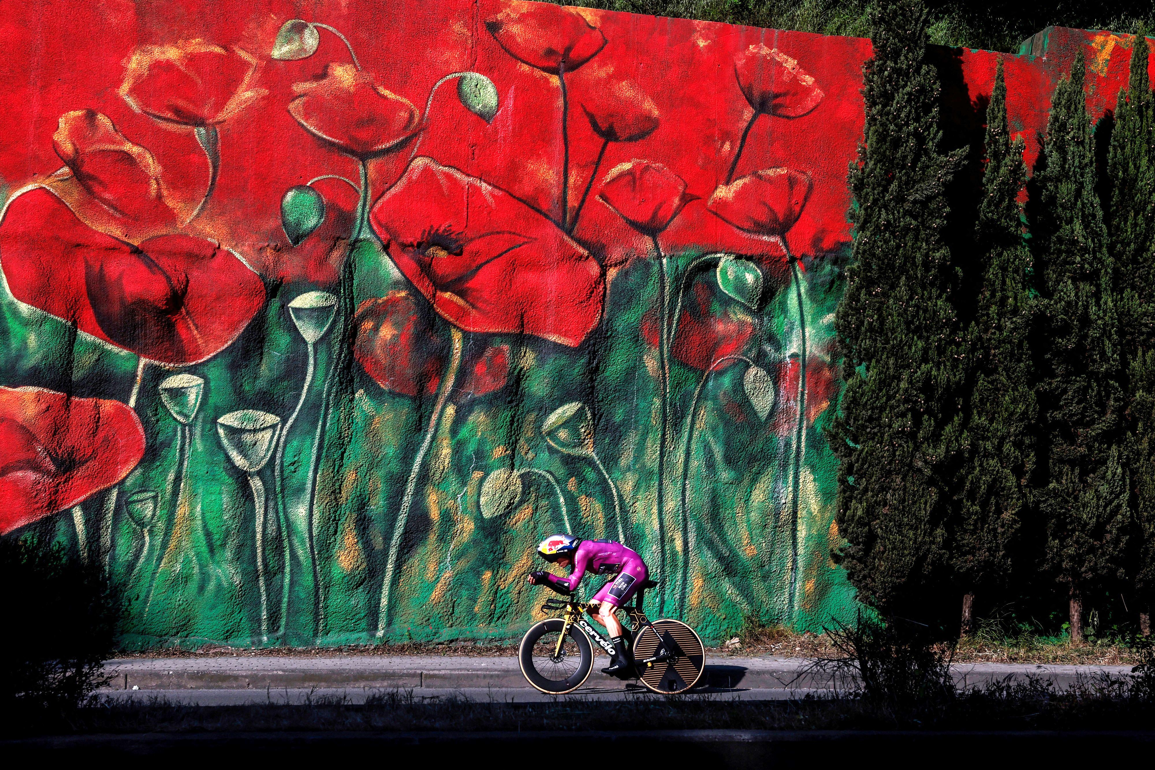 Team Visma-Lease a Bike's Belgian rider Wout Van Aert competes during the second stage of the 108th Giro d'Italia cycling race, a 13.7km individual time-trial from Tirana to Tirana in Albania, on May 10, 2025. (Photo by Luca Bettini/AFP Photo)
