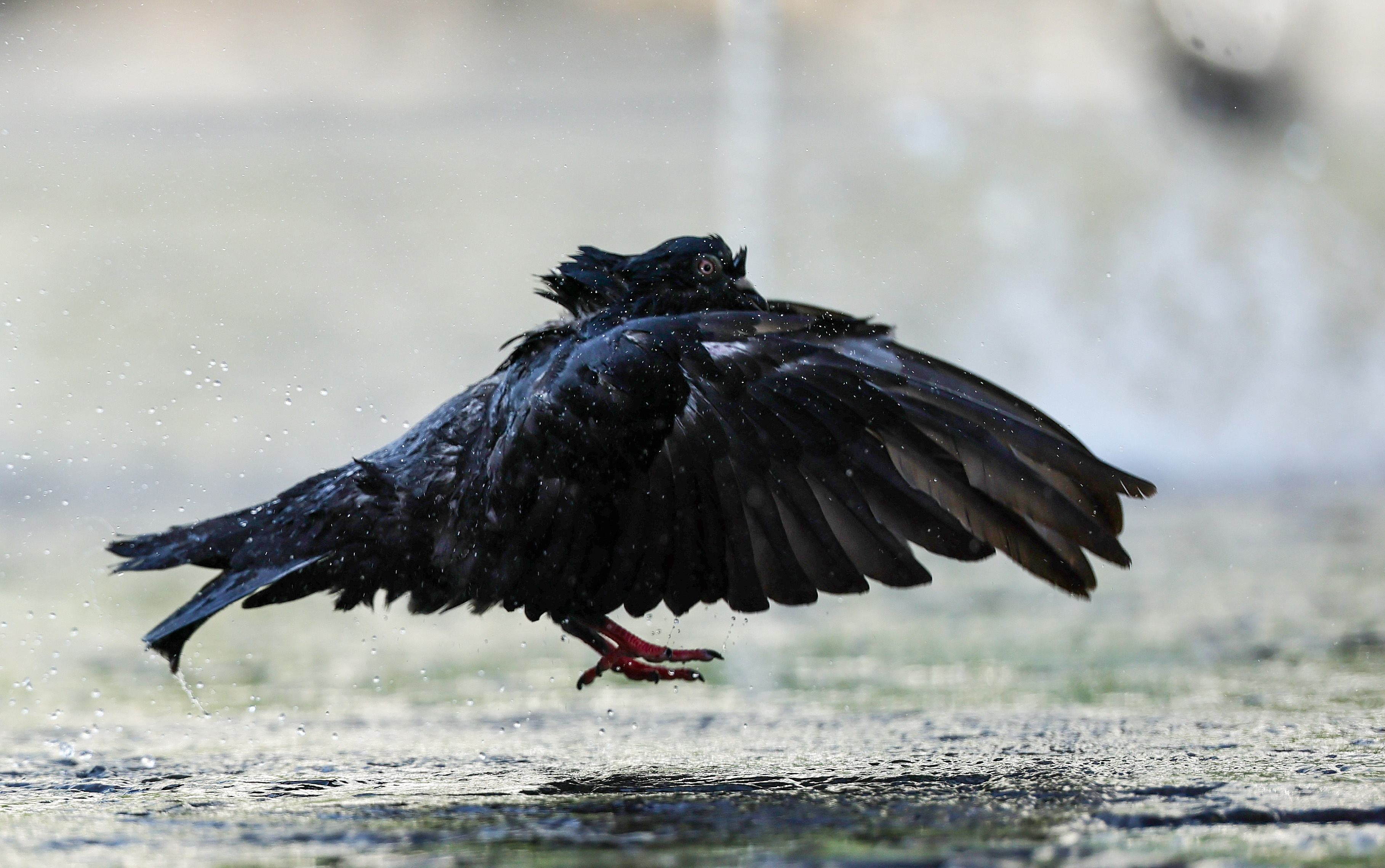 A dove bathes in a water fountain in the City Center in Frankfurt am Main, Germany, 13 August 2025. (Photo by Ronald Wittek/EPA)