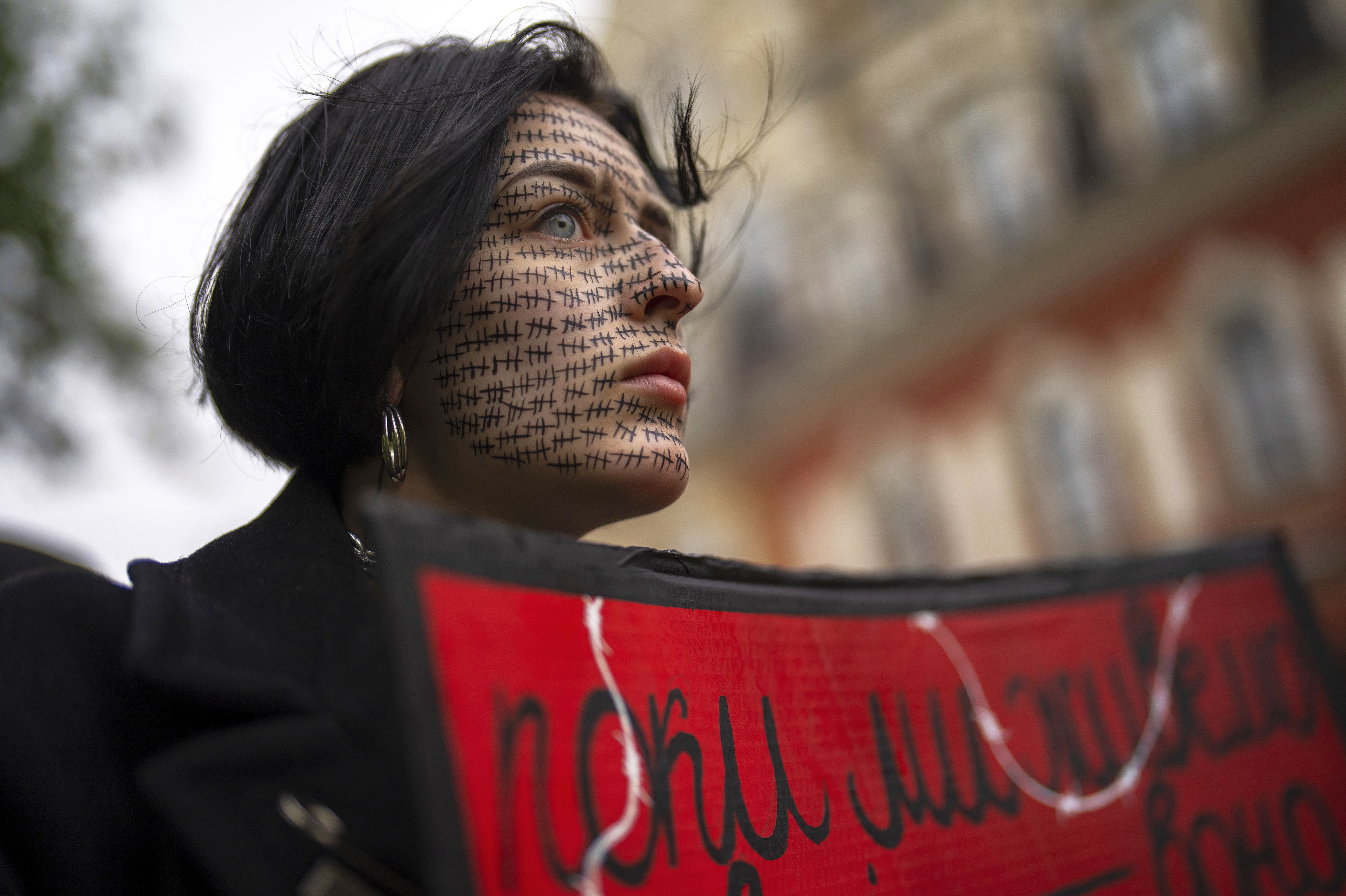 A woman holds a “Free Azov” sign during a rally aiming to raise awareness on the fate of Ukrainian prisoners of war in Kyiv, Ukraine, Sunday, April 21, 2024. The U.S. House of Representatives swiftly approved $95 billion in foreign aid for Ukraine, Israel and other U.S. allies in a rare Saturday session as Democrats and Republicans banded together after months of hard-right resistance over renewed American support for repelling Russia's invasion. (Photo by Francisco Seco/AP Photo)