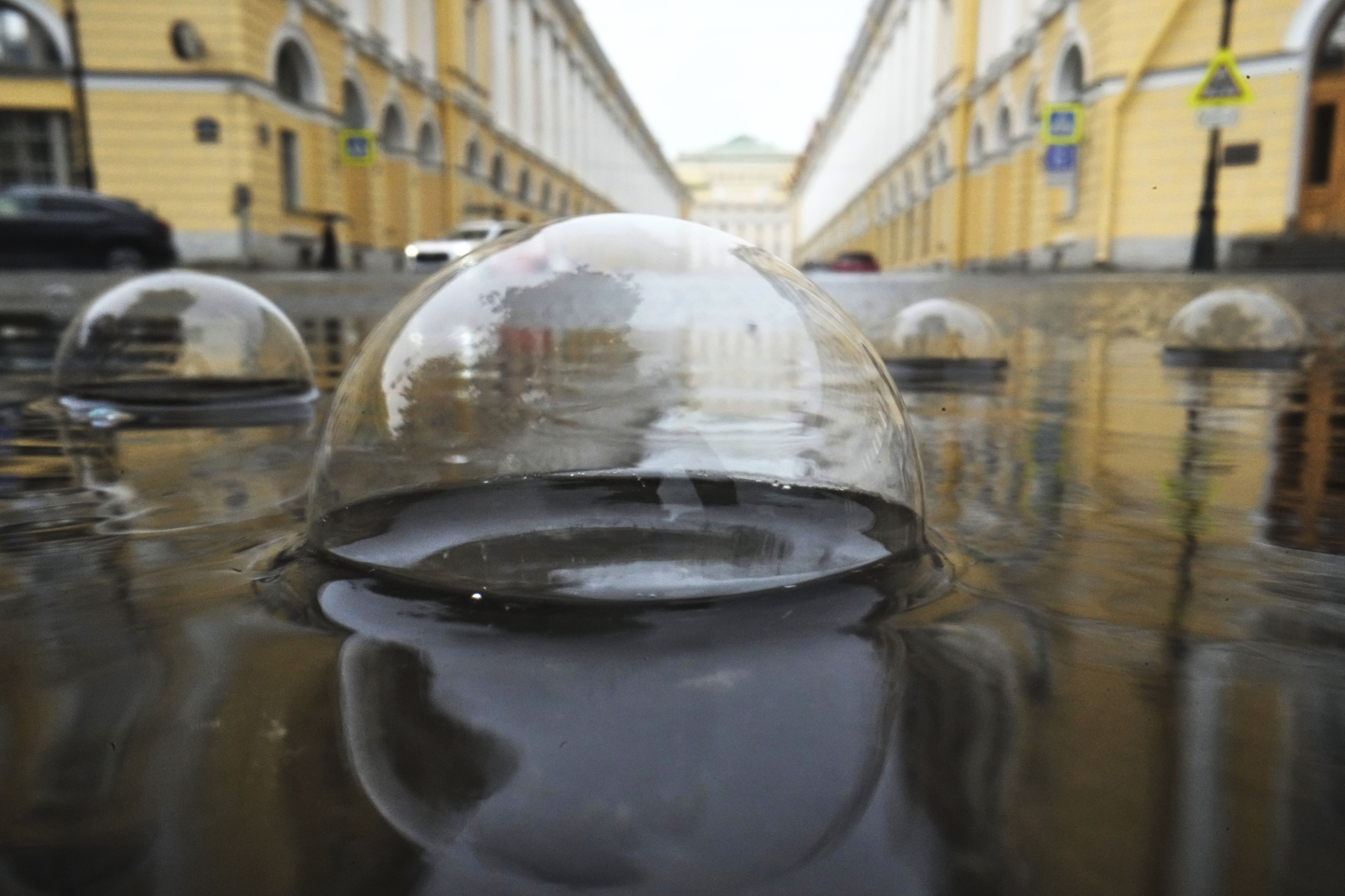 Bubbles form on a puddle during rainfall in central St. Petersburg, Russia, Sunday, June 29, 2025. (Photo by Dmitri Lovetsky/AP Photo)