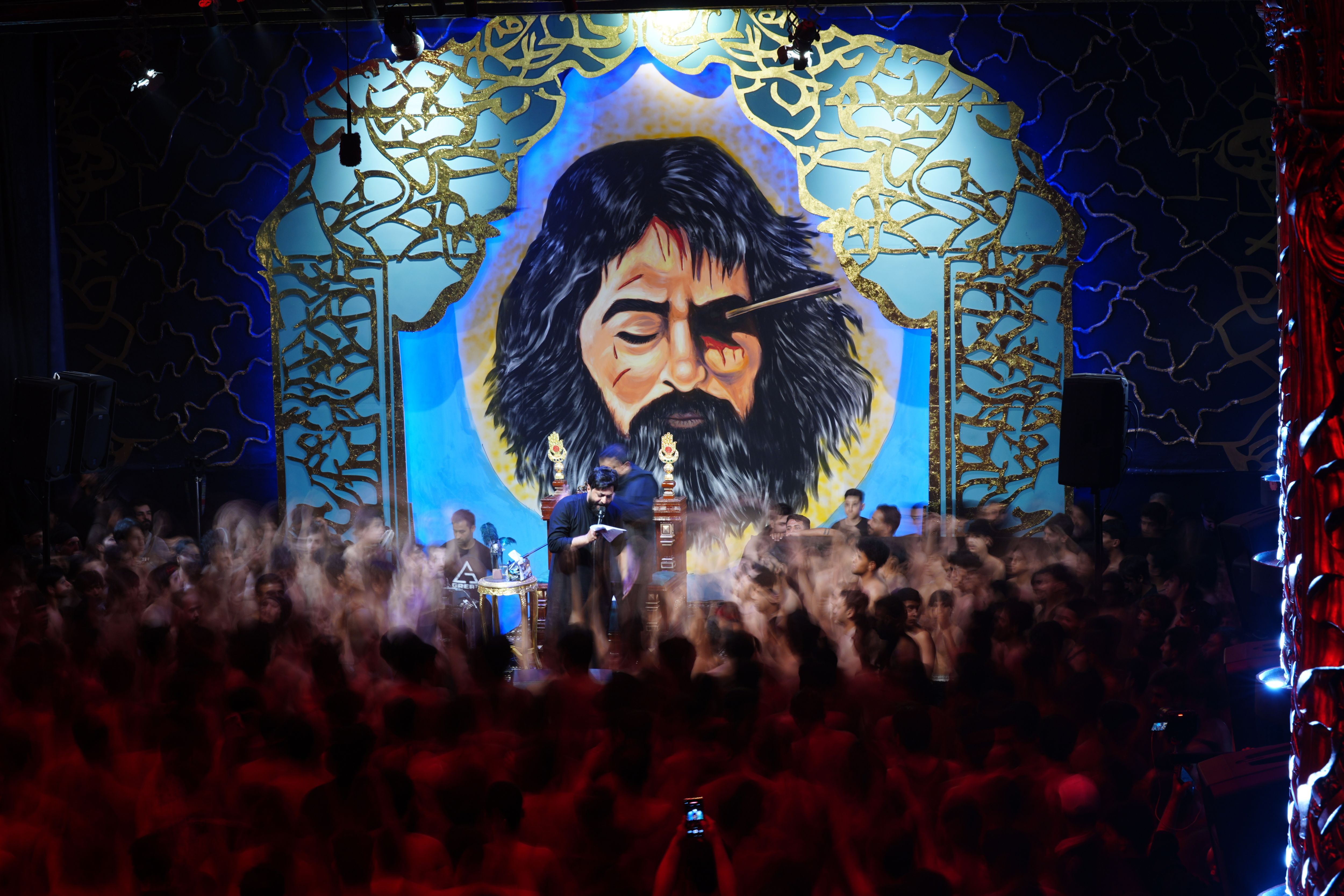 Shia Muslims commemorate Imam Hussein, the grandson of Prophet Muhammad, and his 72 companions who were martyred in the Battle of Karbala, during a mourning ceremony held in Baghdad, Iraq, on July 1, 2025, as part of Muharram observances. Participants joined in reciting elegies and lit torches in honor of the Karbala martyrs. (Photo by Murtadha Al-Sudani/Anadolu via Getty Images)
