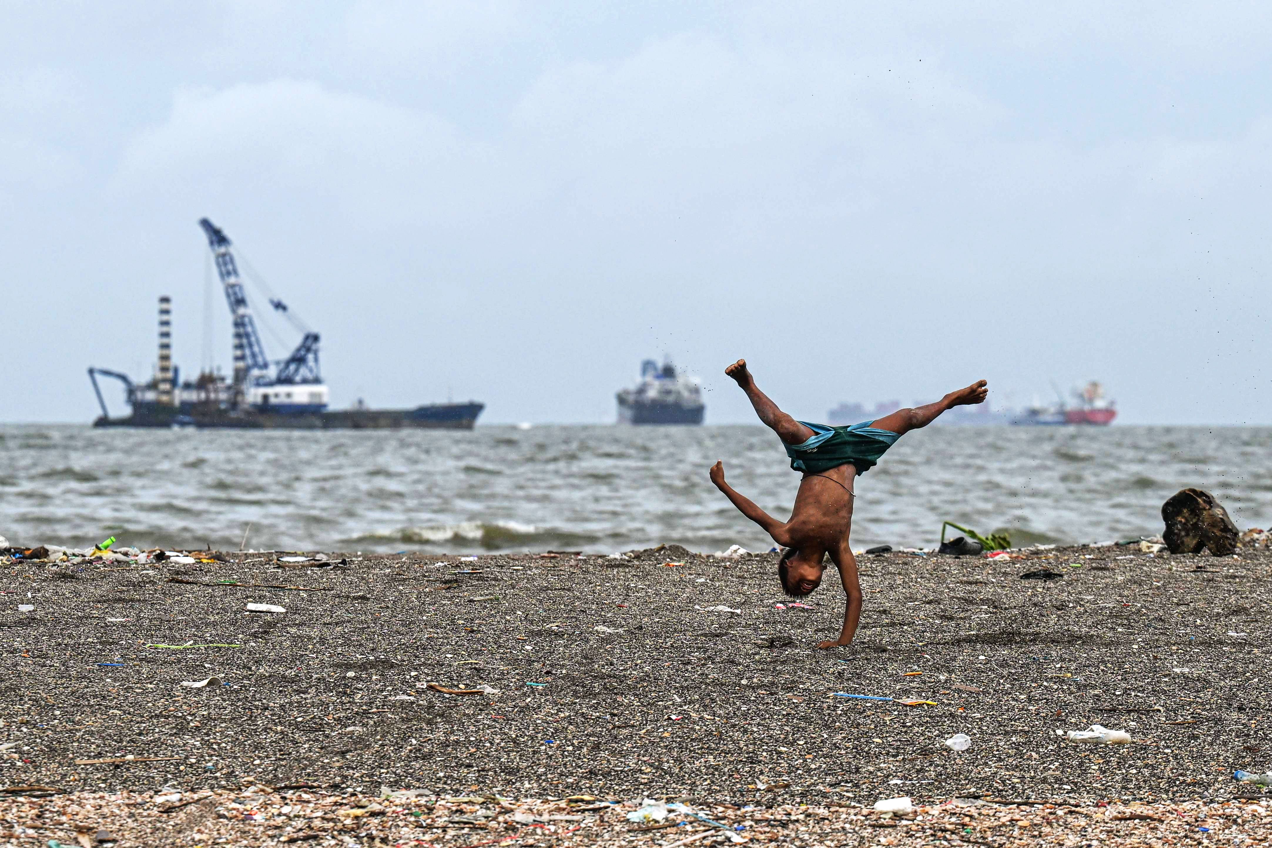 A child plays along Manila Bay on July 3, 2025. (Photo by Jam Sta Rosa/AFP Photo)
