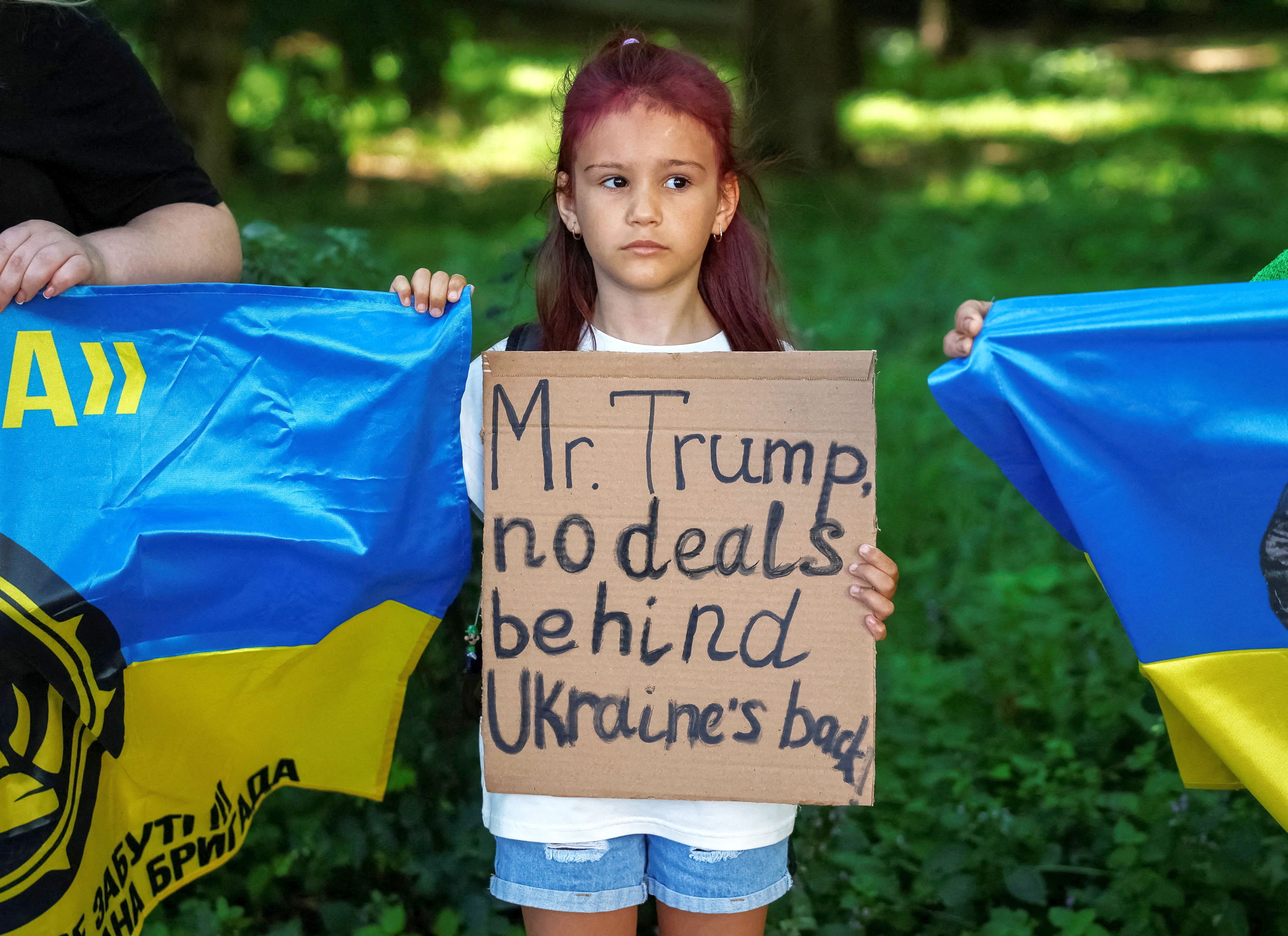 A girl holds a placard as activists take part in a rally in front of the U.S. embassy ahead of the upcoming meeting between U.S. President Donald Trump and Russian President Vladimir Putin to raise awareness about the plight of thousands of prisoners of war still in Russian captivity, amid Russia's attack on Ukraine, in Kyiv, Ukraine on August 15, 2025. (Photo by Gleb Garanich/Reuters)