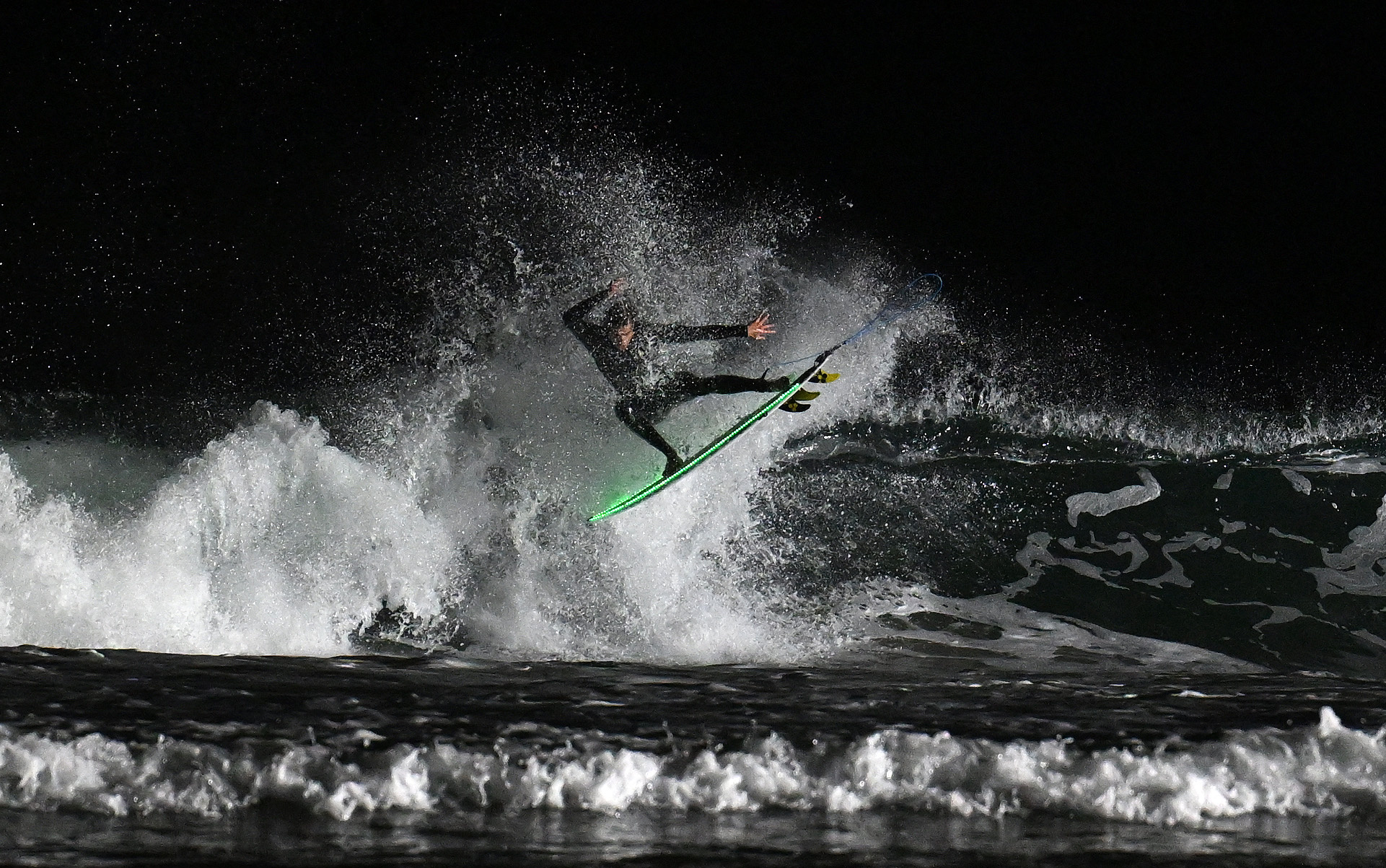 France's Sam Piter competes in a surf session during the Anglet Night Surfing competition 2025 at the “Chambre d'amour” beach in Anglet, south-western France, on August 22, 2025. (Photo by Gaizka Iroz/AFP Photo)