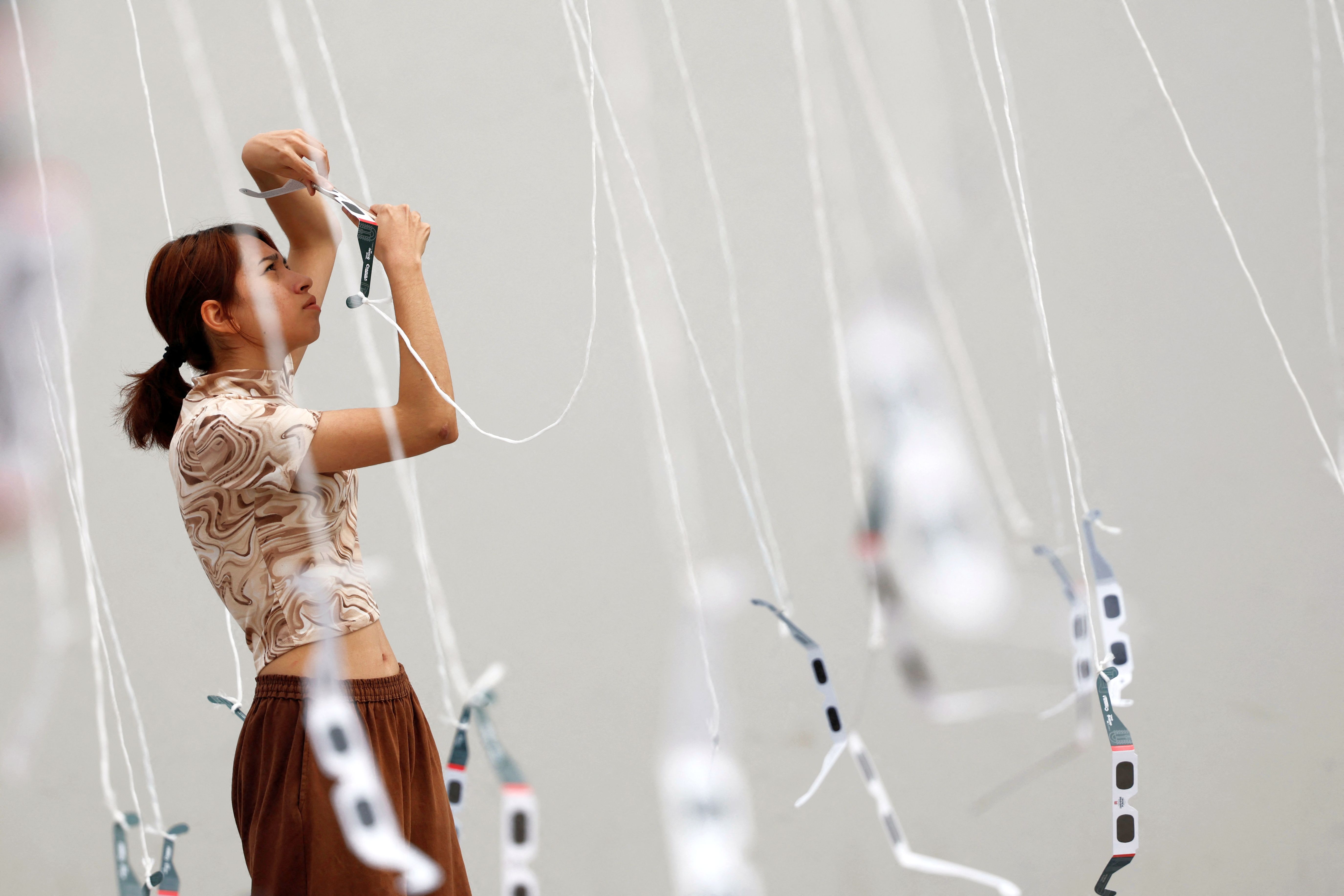 A woman observes the solar eclipse, in Torreon, state of Coahuila, Mexico on April 8, 2024. (Photo by Daniel Becerril/Reuters)