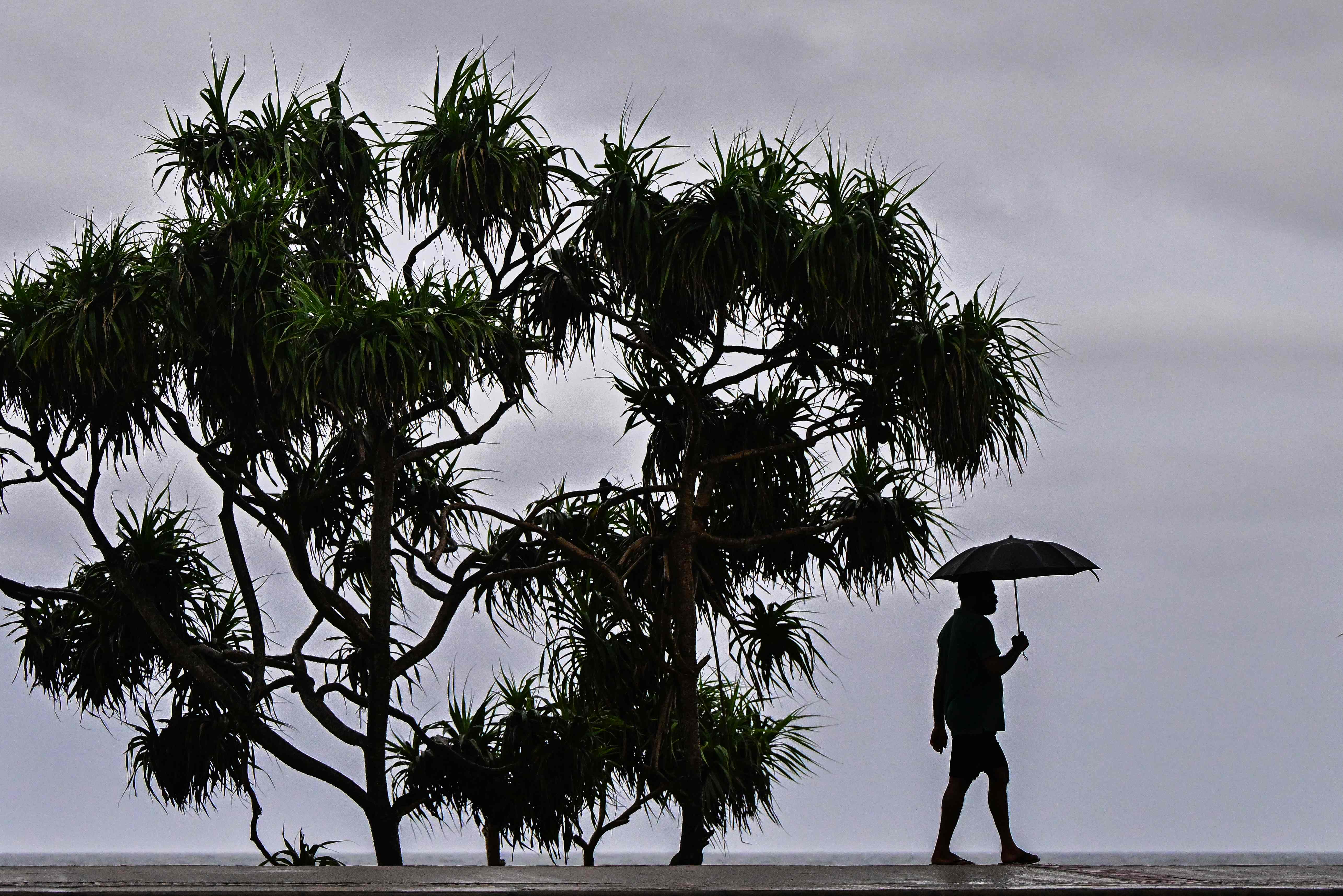 A man carrying an umbrella walks along a street amid rainfall in Colombo on May 18, 2025. (Photo by Ishara S. Kodikara/AFP Photo)