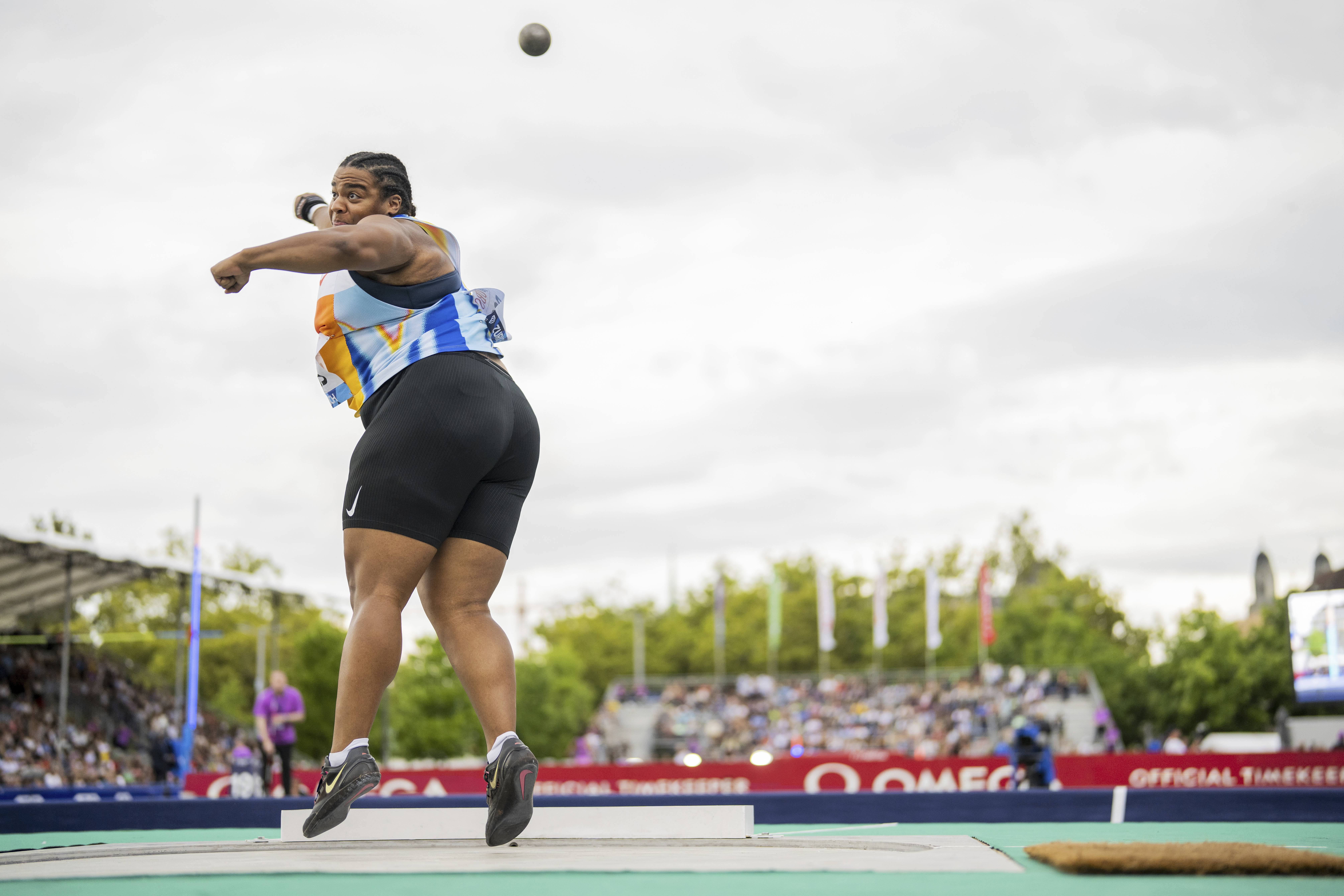 Jaida Ross of the U.S. in action during the shot put women competition at the Wanda Diamond League Final 2025 athletics meeting in Zurich, Switzerland, Wednesday, August 27, 2025. (Photo by Til Buergy/Keystone via AP Photo)