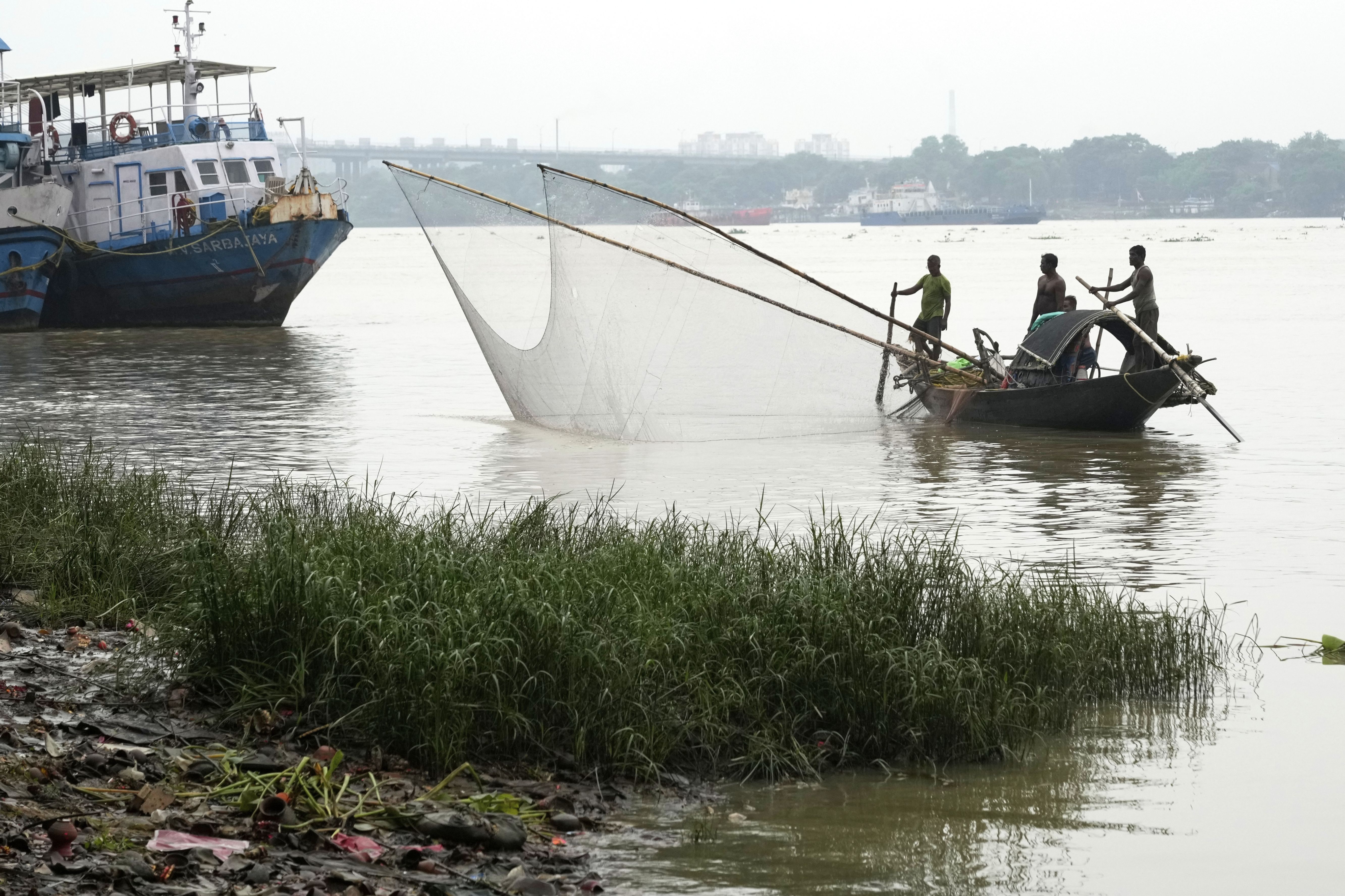 Fishermen in a country boat haul the Hooghly River to catch fish for their livelihood, in Kolkata, India, Tuesday, August 5, 2025. (Photo by Bikas Das/AP Photo)