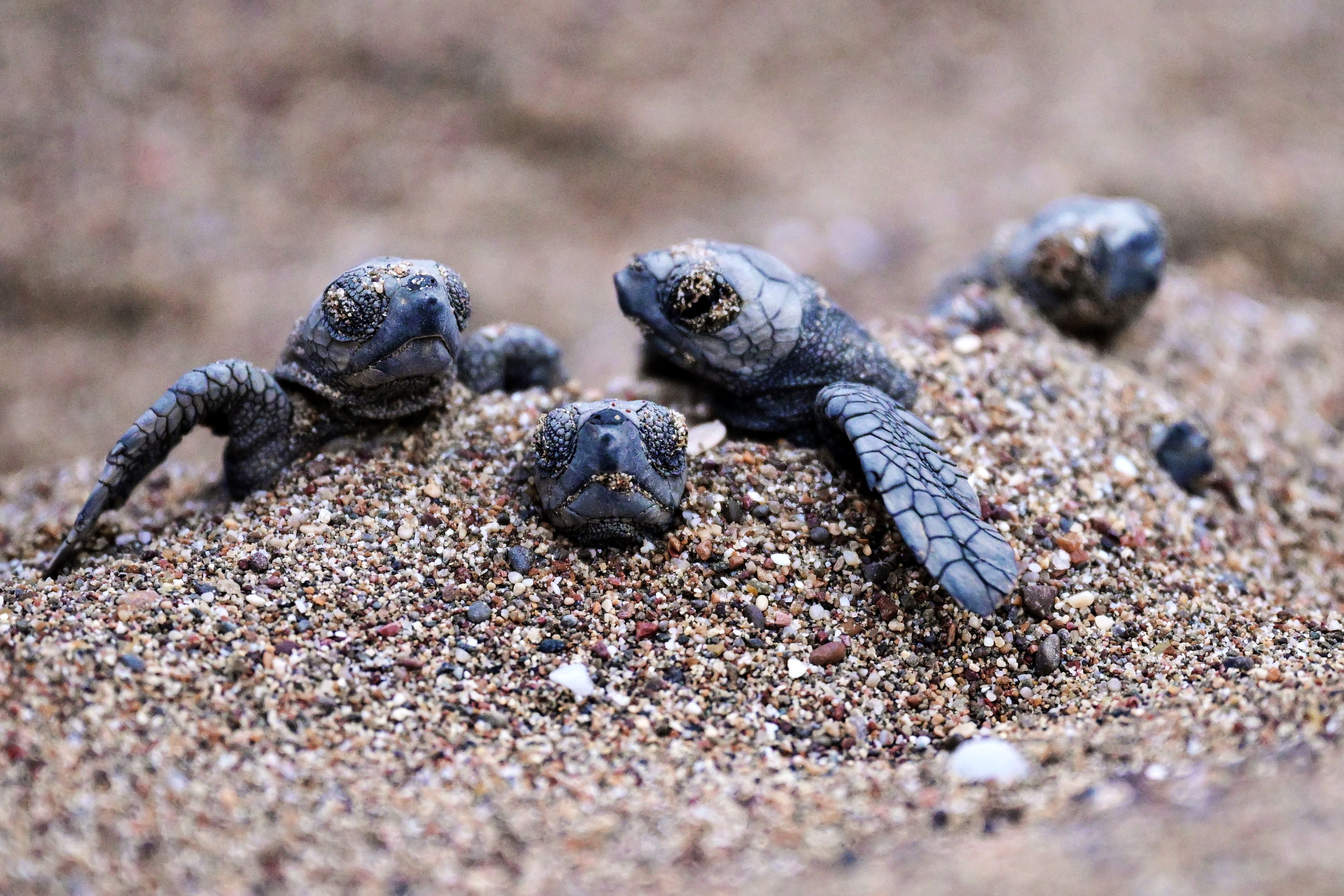 The endangered baby loggerhead sea turtles (Caretta caretta) head to the sea at the beach of Aska Lara Hotel in Antalya, Turkiye, on August 28, 2025. The nests were opened during a ceremony attended by tourism professionals. (Photo by Orhan Cicek/Anadolu via Getty Images)