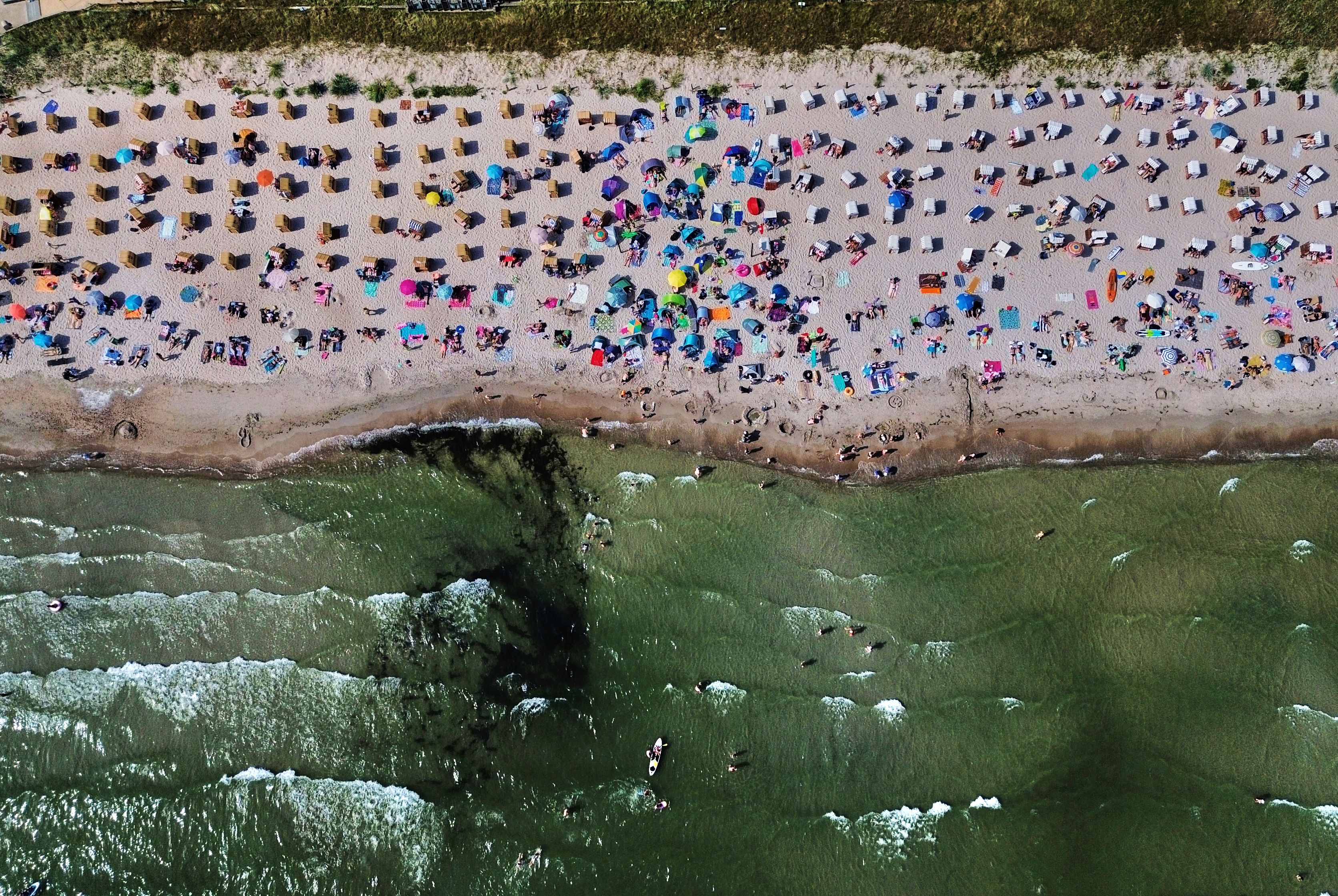 People spend the day at the beach of the Baltic Sea in Scharbeutz, northern Germany, Wednesday, August 13, 2025. (Photo by Michael Probst/AP Photo)