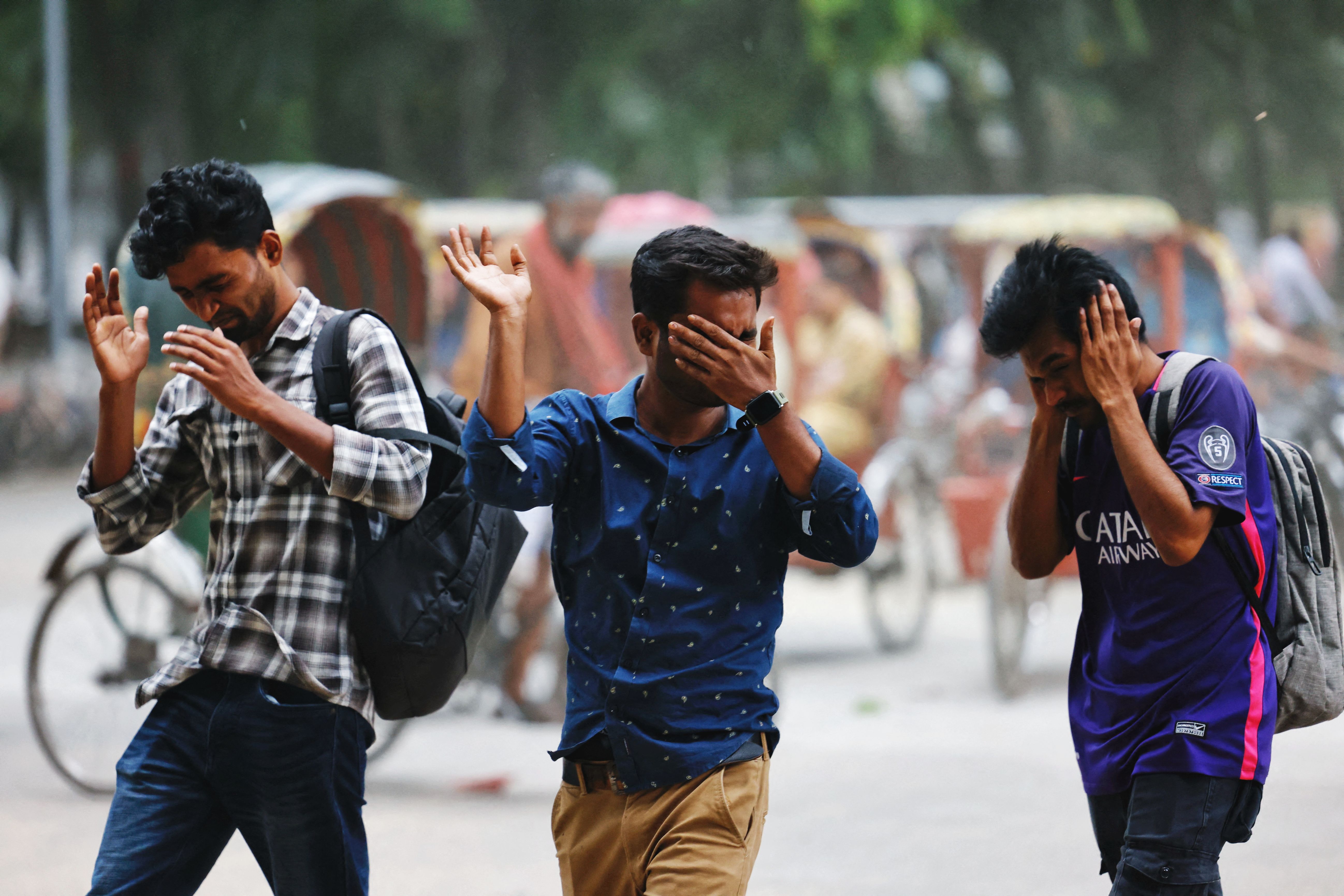 Pedestrians react as storm blows dust into the air, in Dhaka, Bangladesh on May 26, 2025. (Photo by Mohammad Ponir Hossain/Reuters)