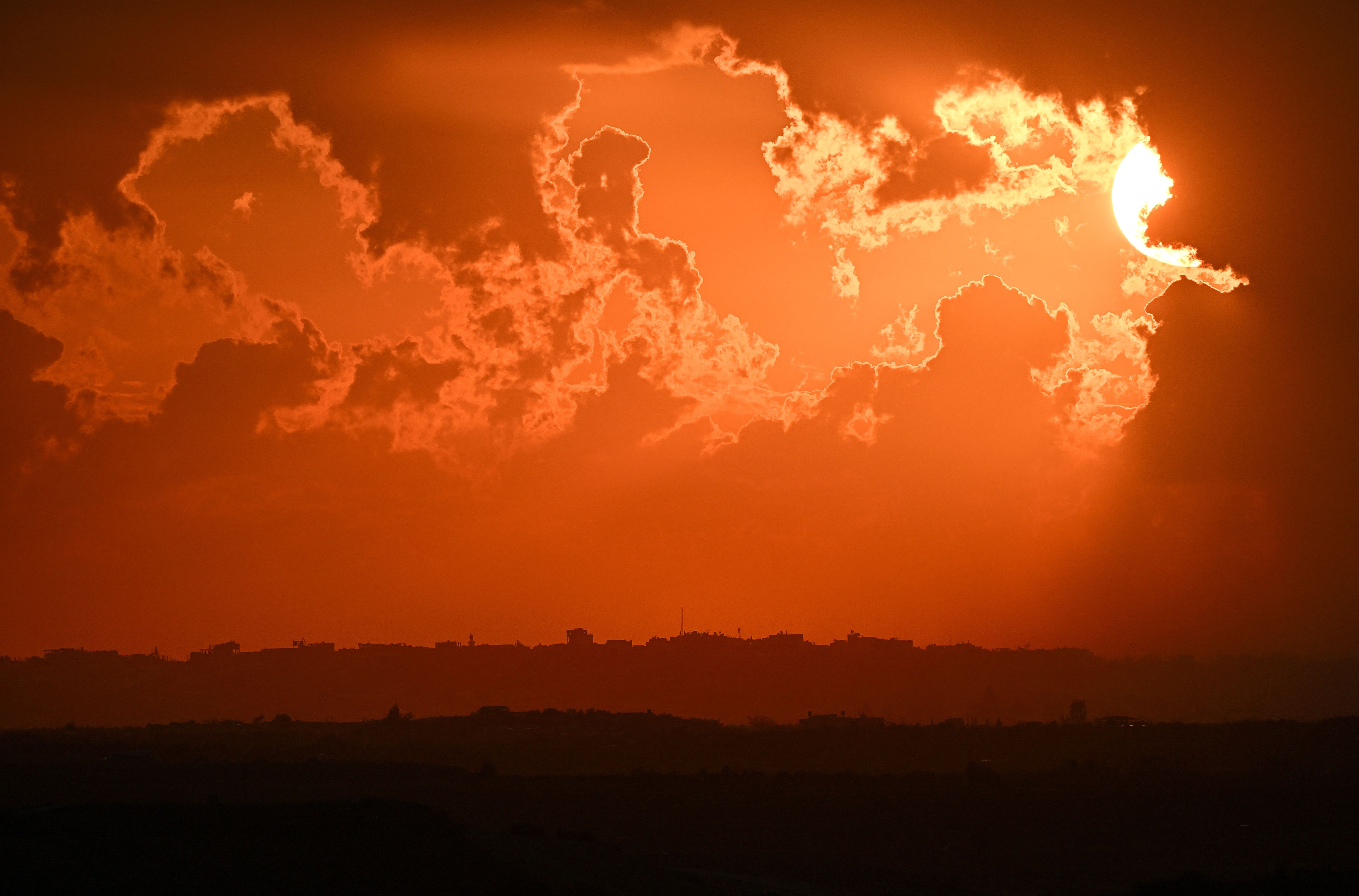 The sun sets over northern Gaza ruins, amid the ongoing conflict between Israel and the Palestinian Islamist group Hamas, as seen from Sderot, Israel, on February 2, 2024. (Photo by Dylan Martinez/Reuters)