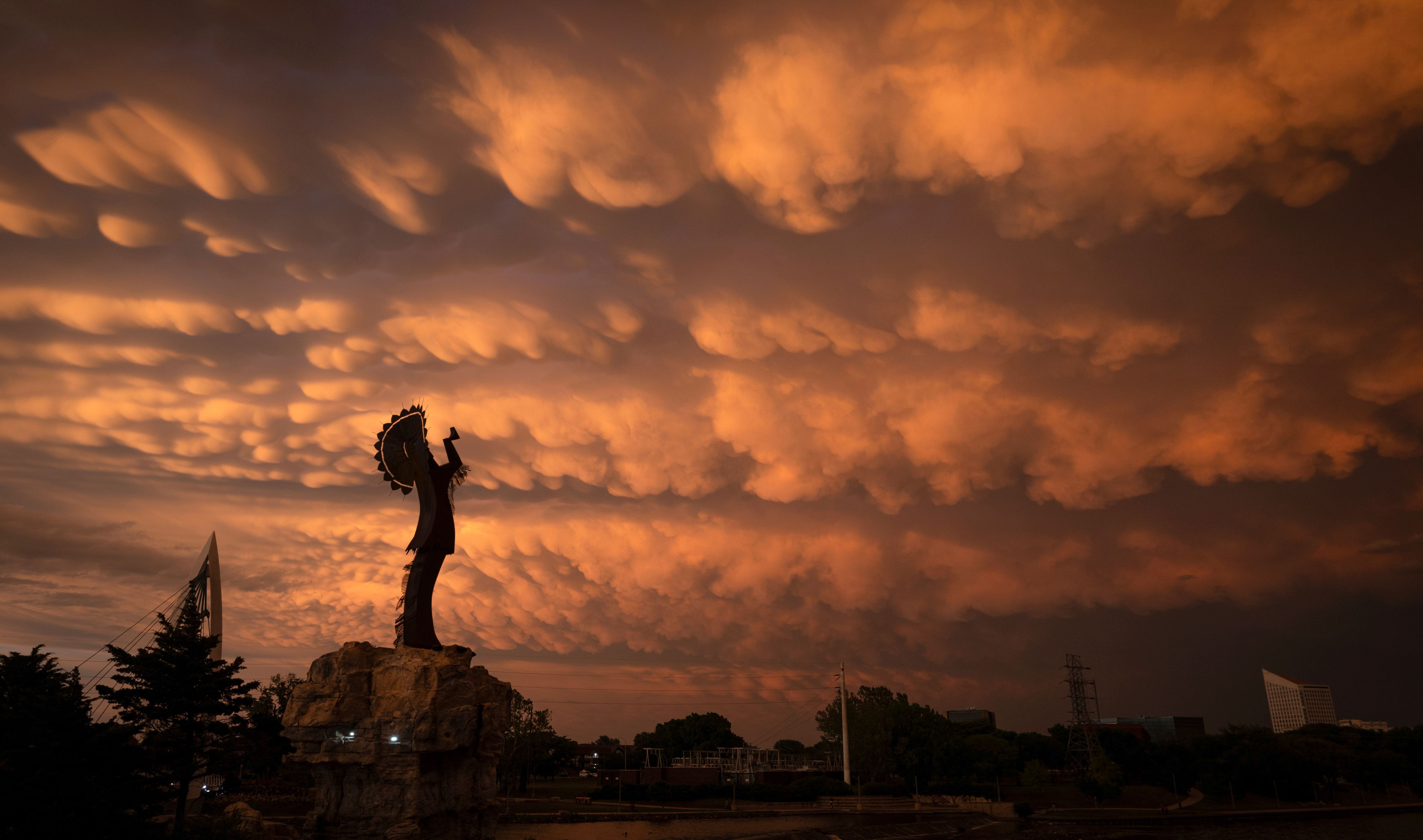 A formation of mammatus clouds fills the sky over north-east Kansas on April 30, 2024, after severe storms and a few tornadoes crossed the state. (Photo by Travis Heying/The Wichita Eagle/AP Photo)