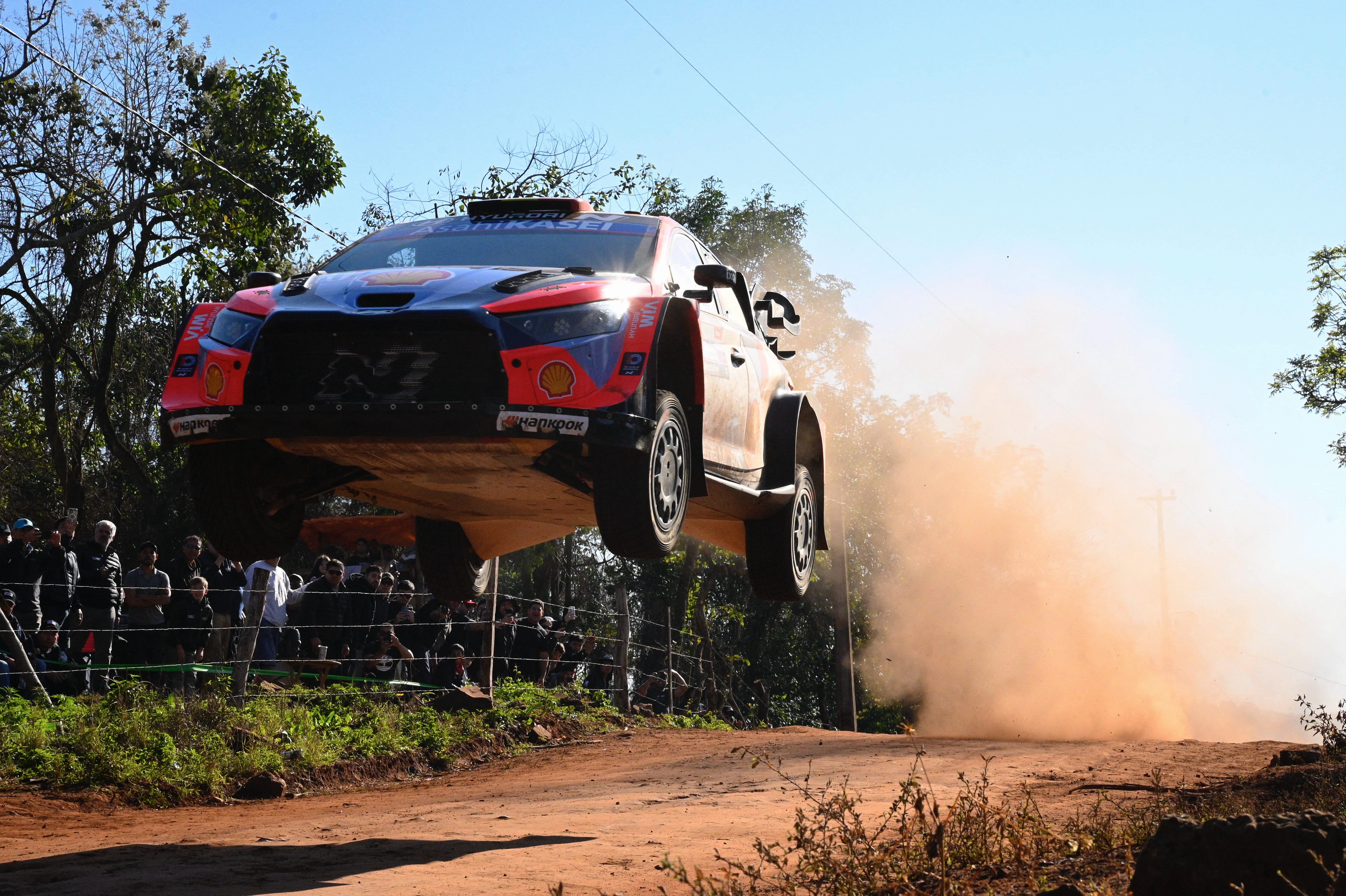 Belgium Driver Thierry Neuville And Co-driver Martijn Wydaeghe compete in their Hyundai i20 N Rally1 during the Nueva Alborada stage of the WRC Rally Paraguay, the 10th round of the FIA World Rally Championship (WRC), near Encarnacion, Paraguay on August 29, 2025. (Photo by Luis Robayo/AFP Photo)