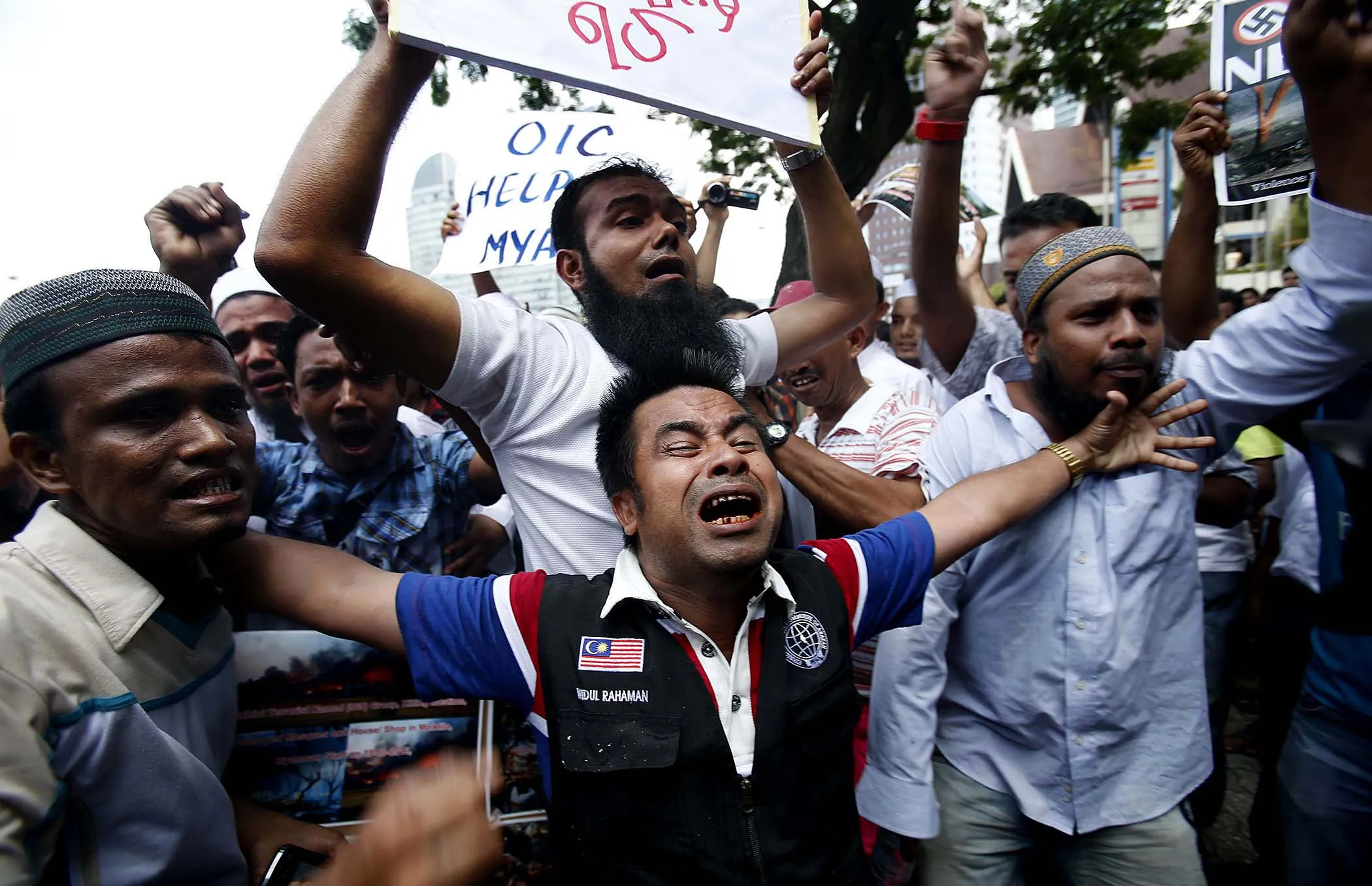 Myanmar Muslims living in Kuala Lampur protest against ethnic unrest between Buddhists and Muslim in Meikhtila, Myanmar, on March 25, 2013. Anti-Muslim mobs rampaged through three more towns in Myanmar's predominantly Buddhist heartland over the weekend, destroying mosques and burning dozens of homes despite government efforts to stem the nation's latest outbreak of sectarian violence. (Photo by Lai Seng Sin/Associated Press)