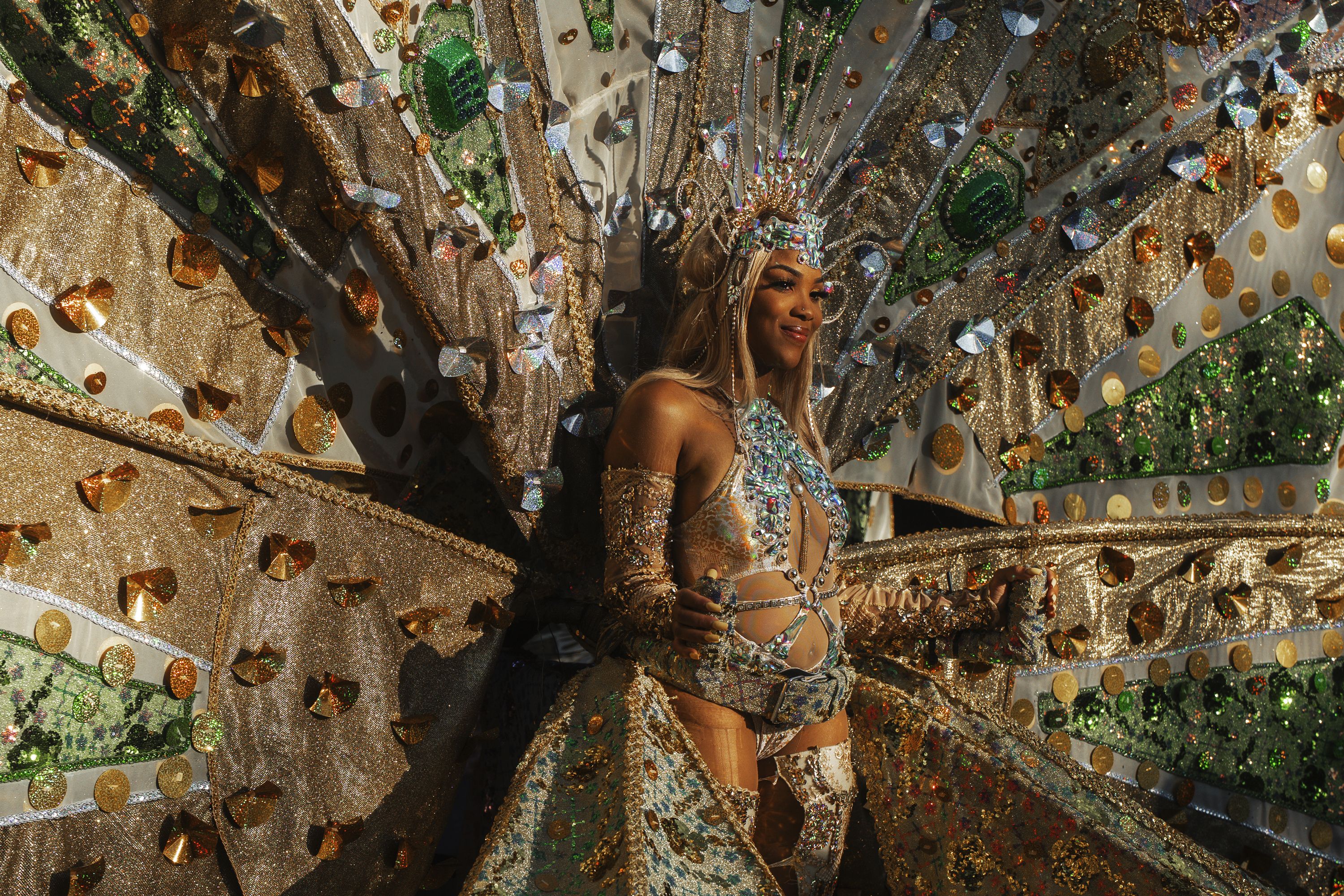 A costumed dancer participates during the West Indian Day Parade on Monday, September 1, 2025, in the Brooklyn borough of New York. (Photo by Olga Fedorova/AP Photo)
