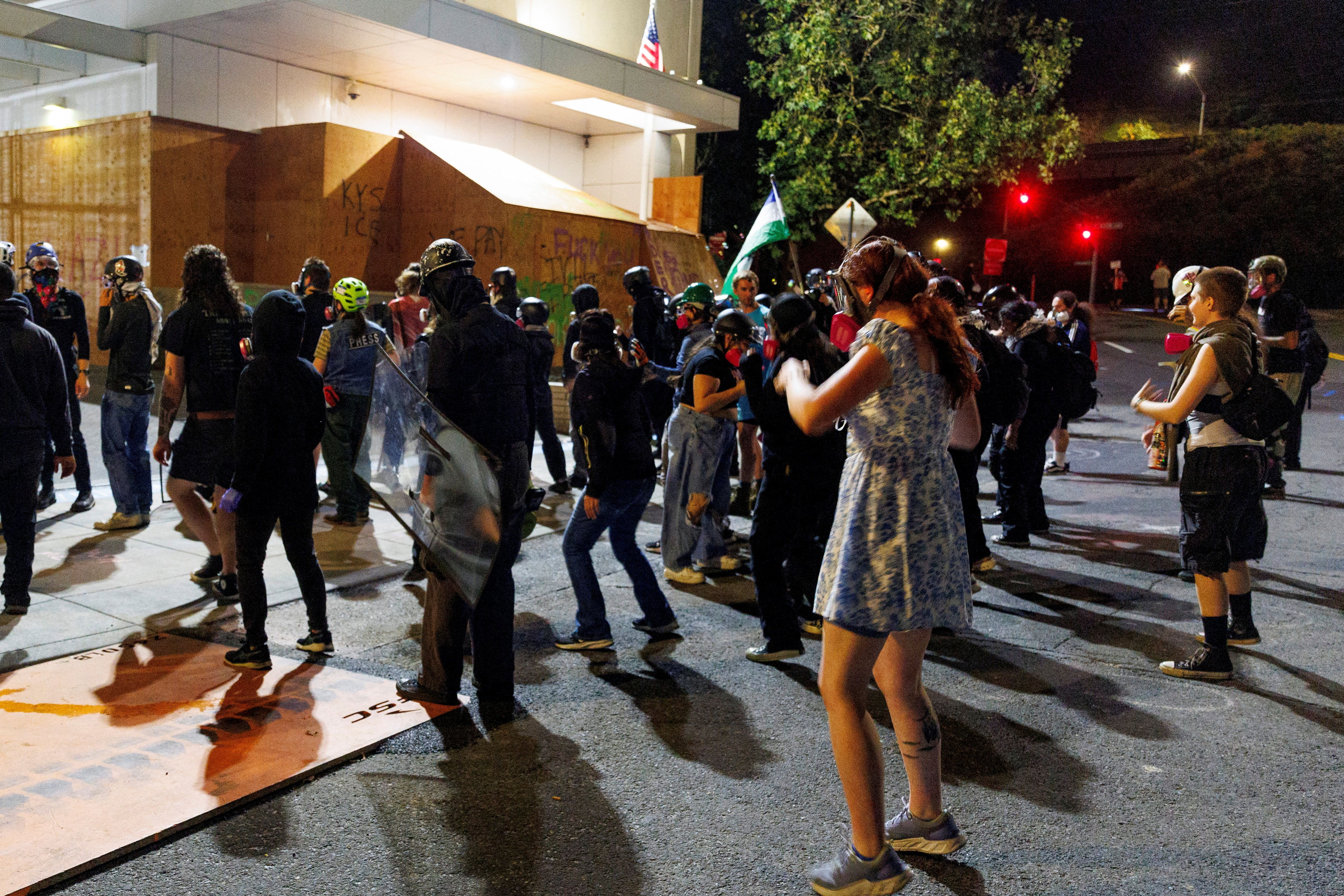 People dance in front of the ICE building during a protest against Trump's immigration policies, outside an ICE detention facility in Portland, Oregon, U.S., on September 1, 2025. (Photo by John Rudoff/Reuters)