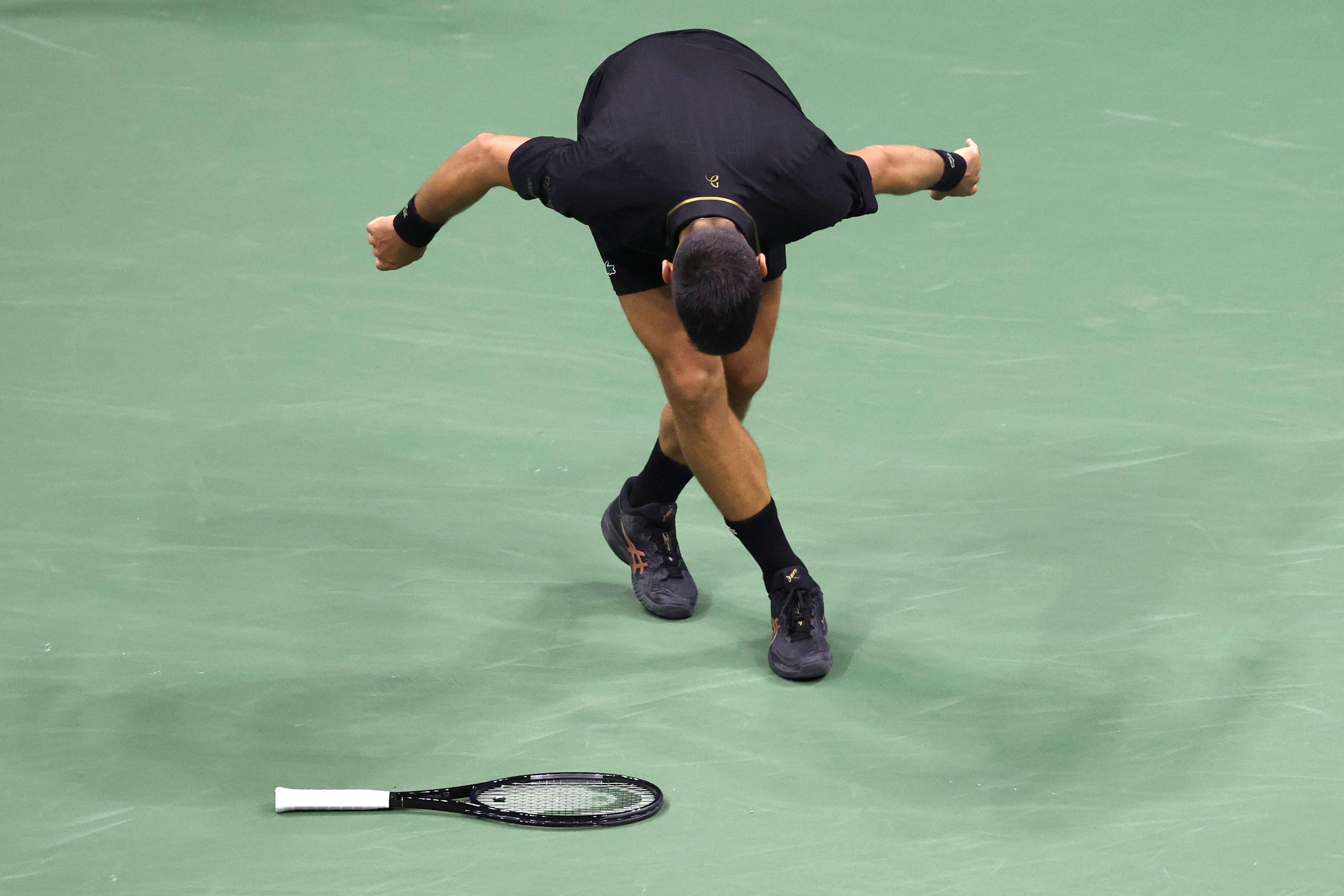Novak Djokovic of Serbia drops his racquet after losing a point against Cameron Norrie of Great Britain during the third round of the US Open Tennis Championships at the USTA Billie Jean King National Tennis Center in Flushing Meadows, New York, USA, 29 August 2025. The US Open tournament runs from 24 August through 07 September. (Photo by John G. Mabanglo/EPA)