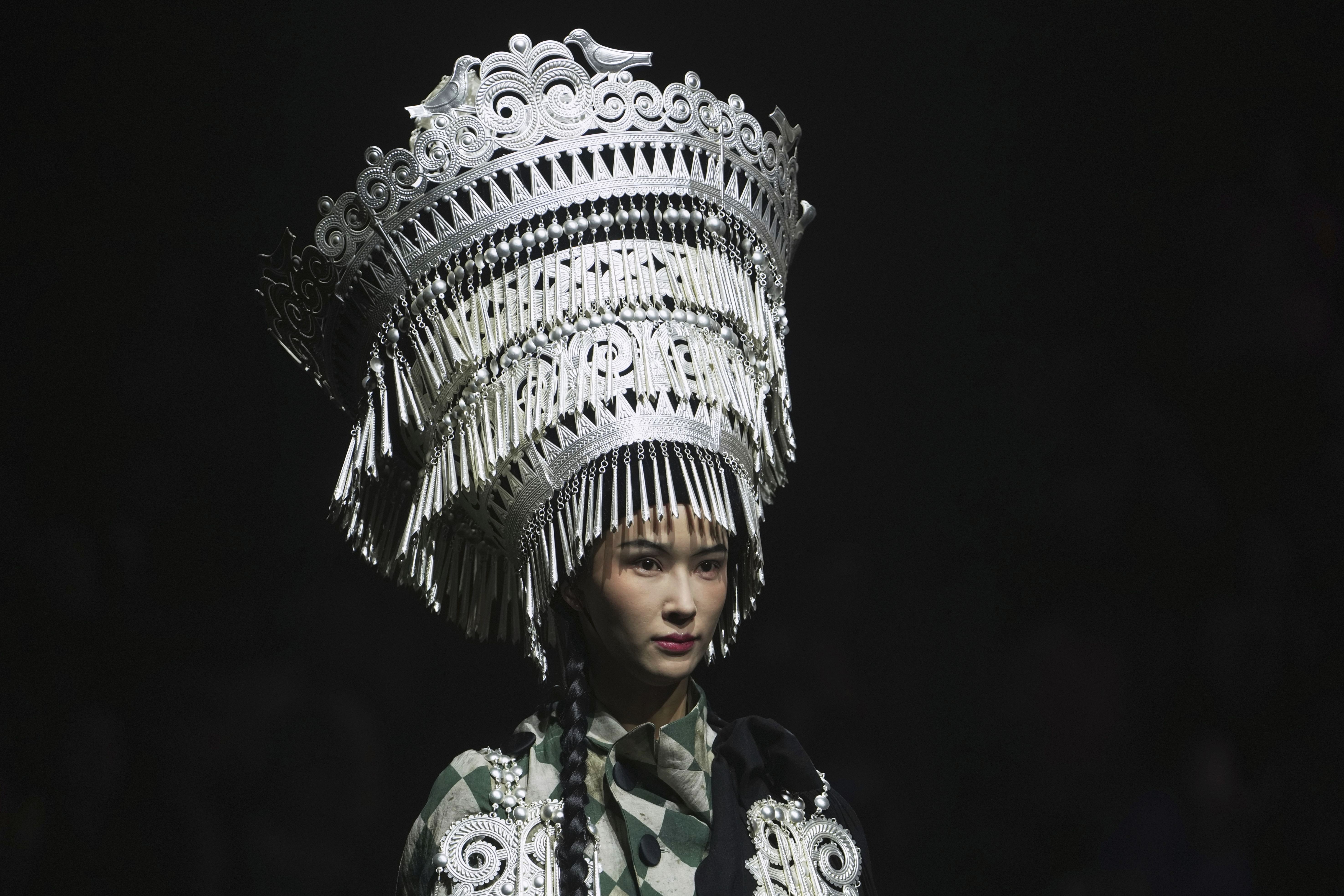 A model presents a creation from the WuMeng Village collection by Si Pu during the SS2026 China Fashion Week in Beijing, China, Tuesday, September 9, 2025. (Photo by Andy Wong/AP Photo)