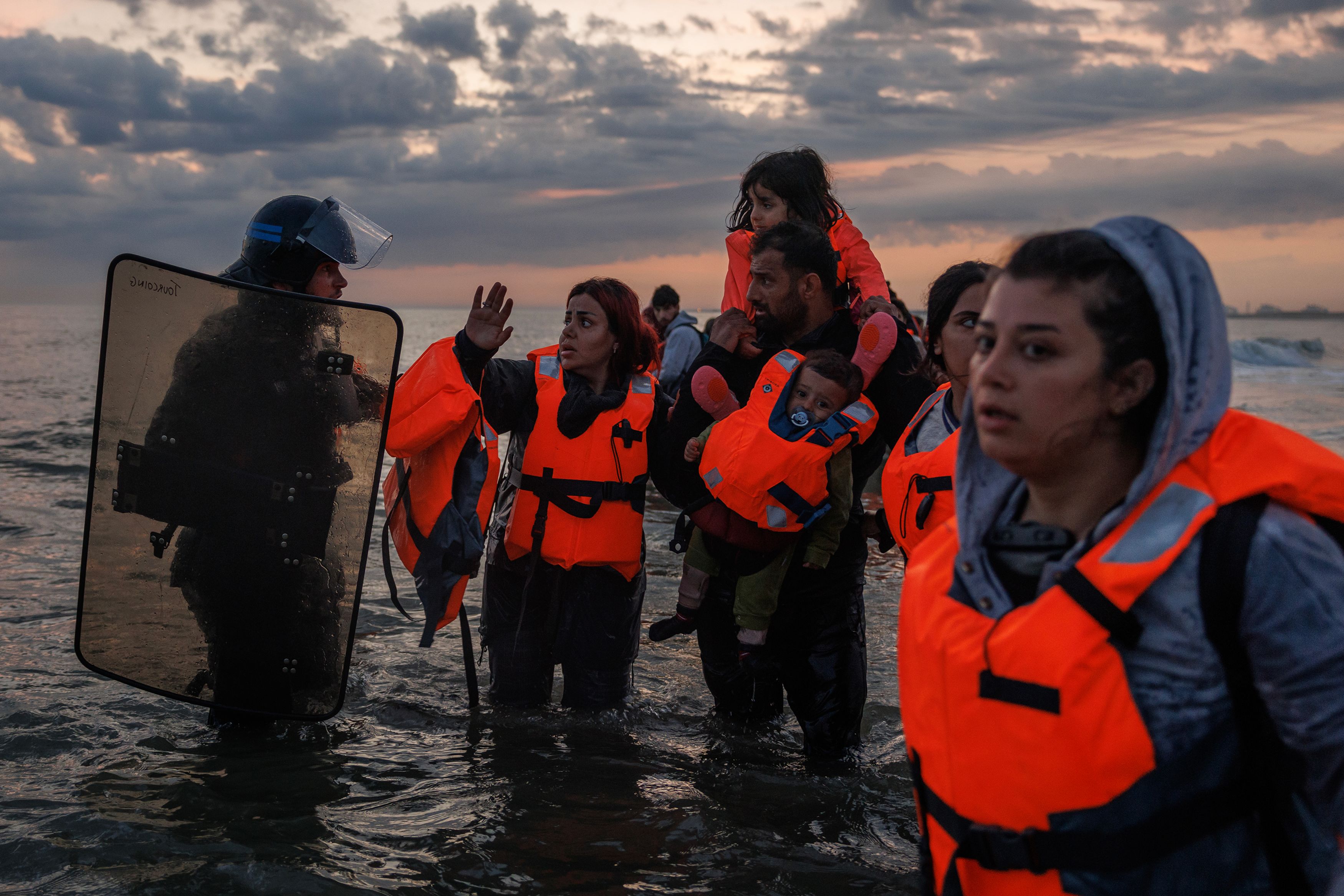 Police enter the water in Gravelines, France, to try to stop migrants from boarding small boats that had come to collect them on Friday, June 13, 2025. (Photo by Dan Kitwood/Getty Images)