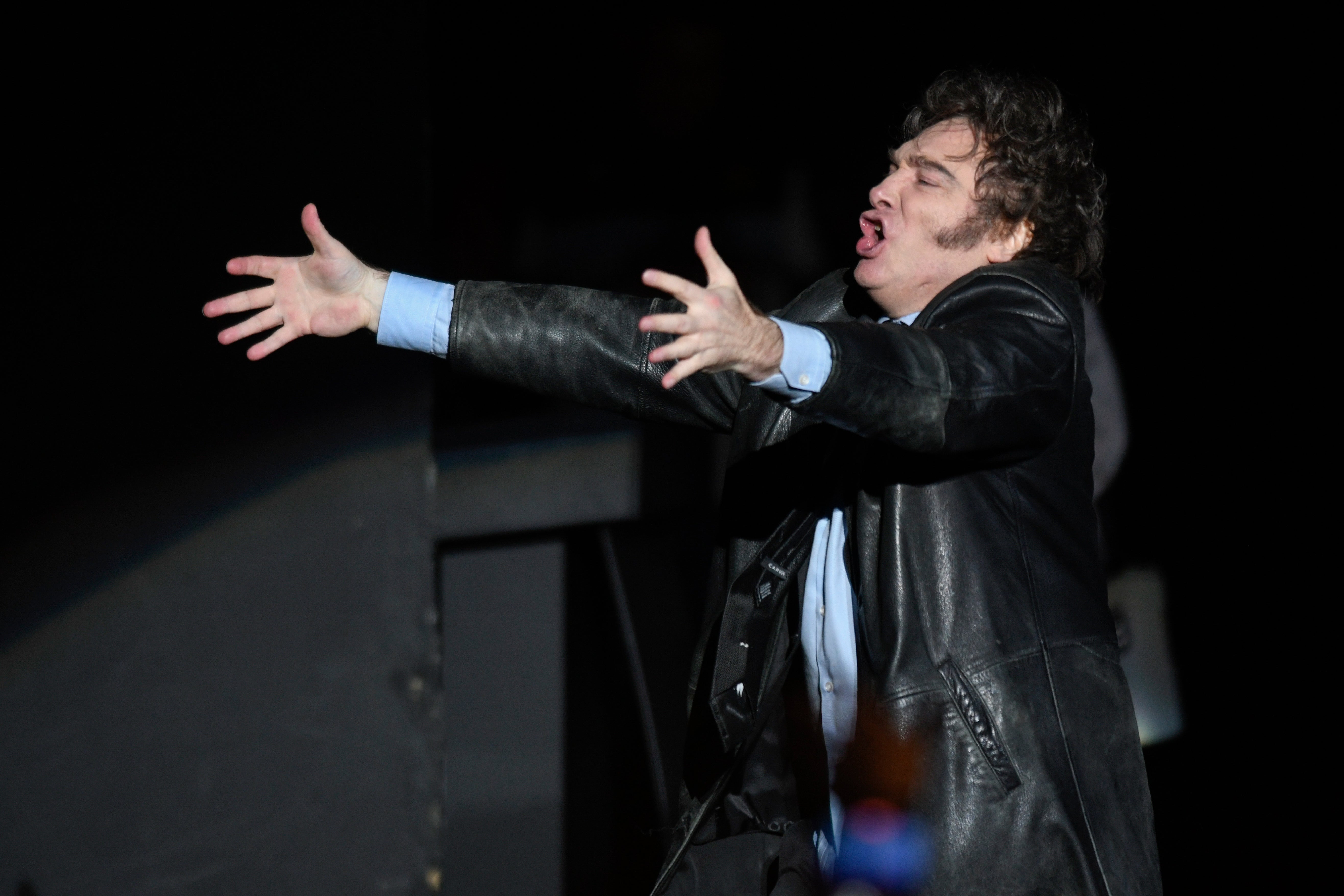 Argentine President Javier Milei sings at a promotional event for his new book in Buenos Aires, Argentina, Wednesday, May 22, 2024. (Photo by Gustavo Garello/AP Photo)
