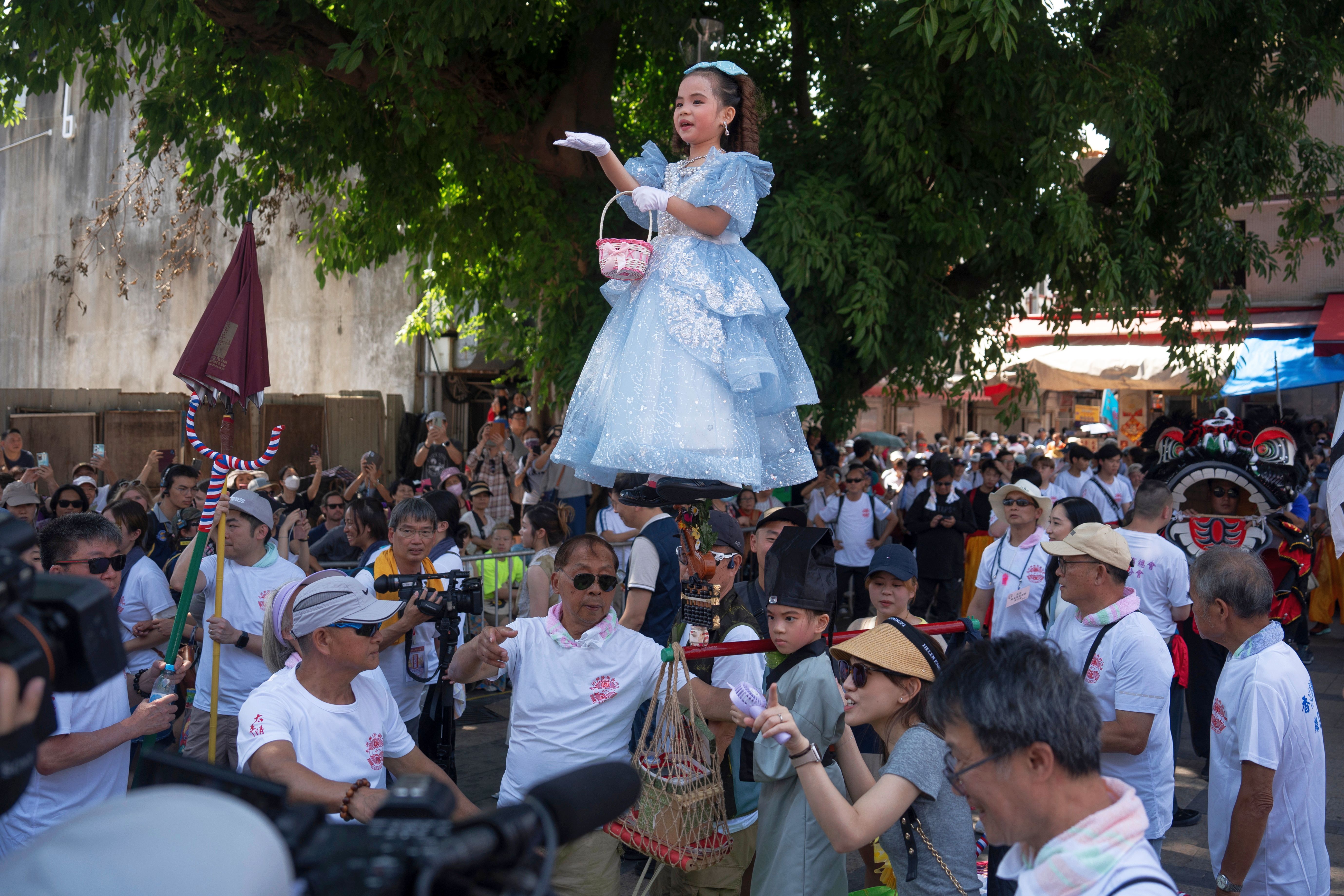A child dressed in costume performs during the Piu Sik Parade at the Bun Festival in Cheung Chau Island, Hong Kong, China, 15 May 2024. The Cheung Chau Bun Festival marks the Eighth day of the Fourth Month in the Chinese calendar. (Photo by Leung Man Hei/EPA/EFE)