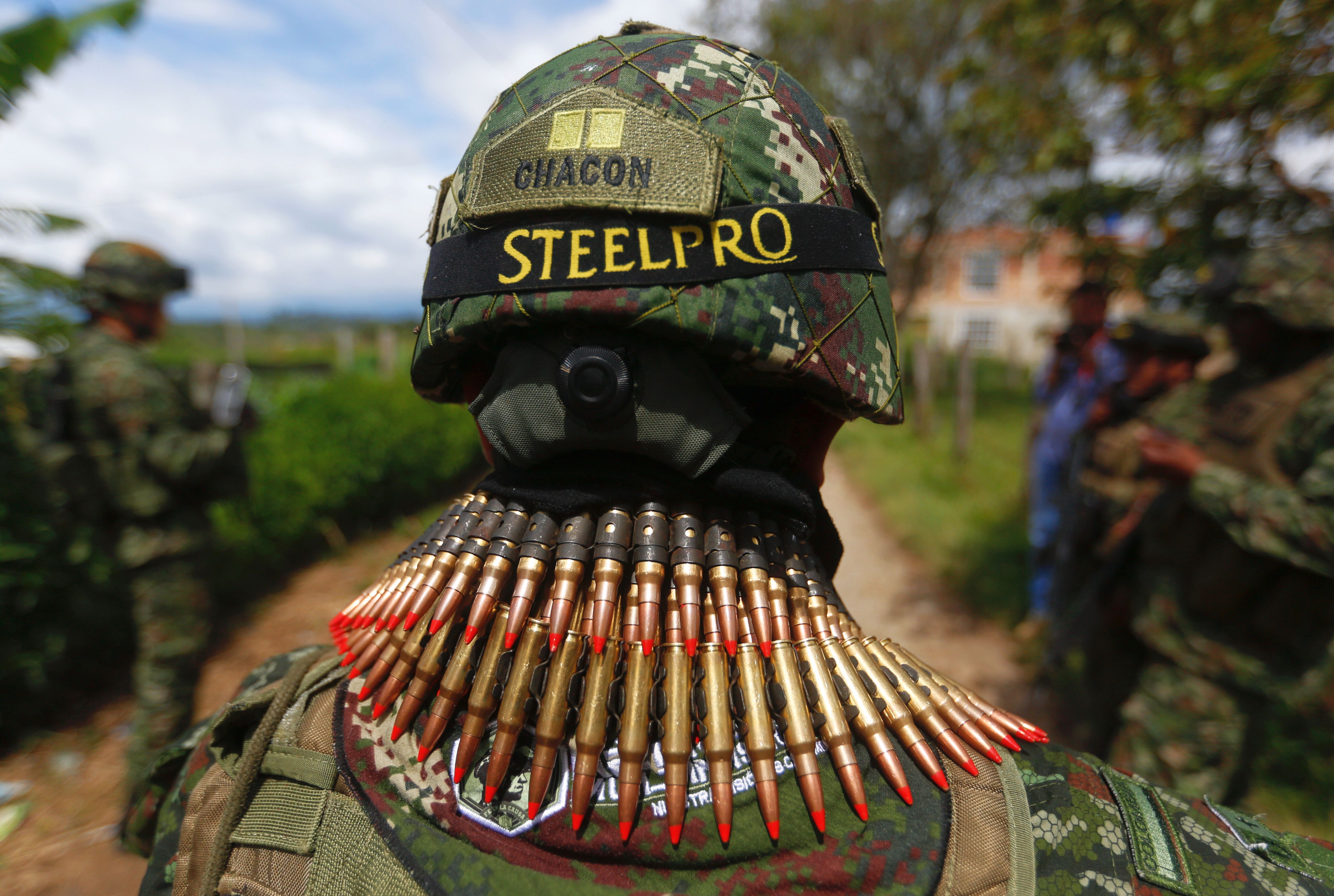 A Colombian soldier patrols near the police station that was attacked by dissidents of the Revolutionary Armed Forces of Colombia (FARC) in Morales, Colombia, 20 May 2024. The victims of the attack perpetrated by alleged dissidents of FARC are four citizens, according to a new report by Colombian Defense Minister Ivan Velasquez. (Photo by Ernesto Guzmán Jr./EPA/EFE)